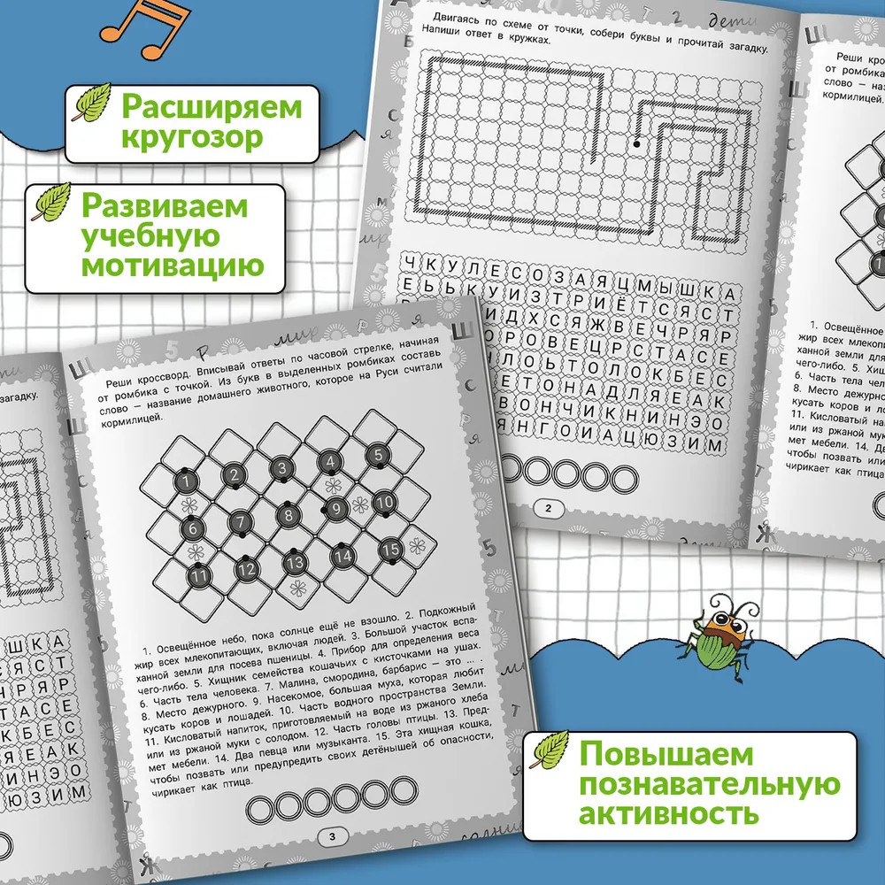 Для общего развития ребёнка подойдут книги с загадками, головоломками и ребусами. Такие книги содержат разнообразные задания и упражнения, направленные на развитие мышления, памяти и внимания. |