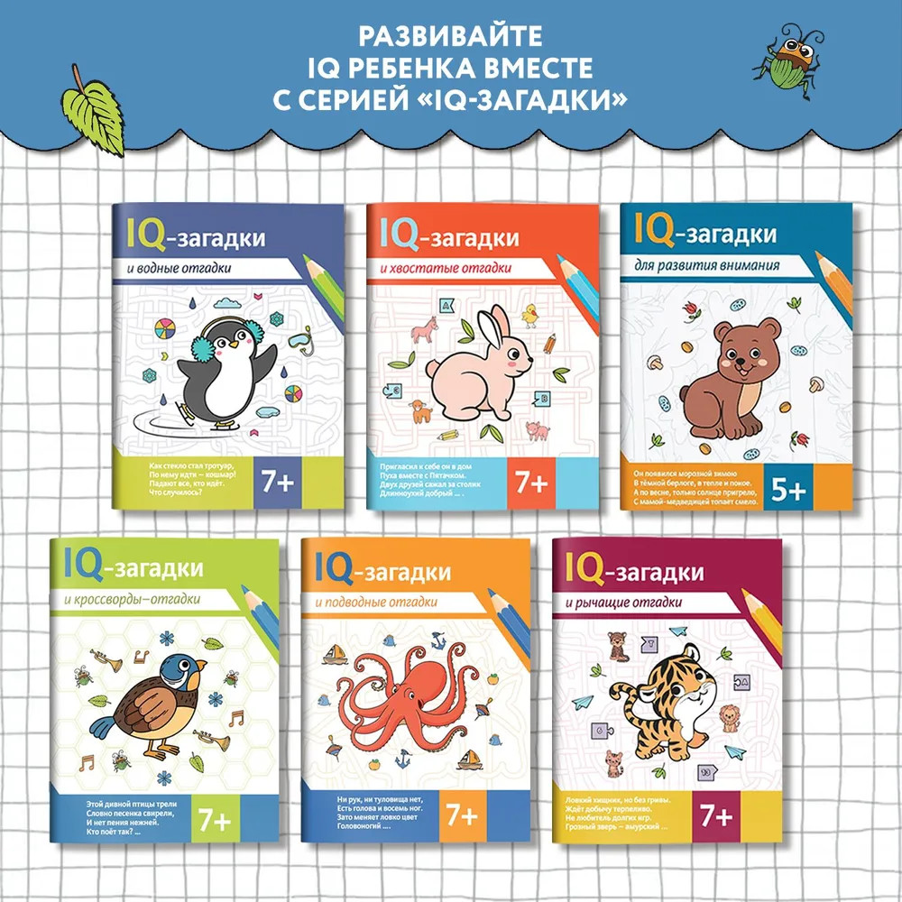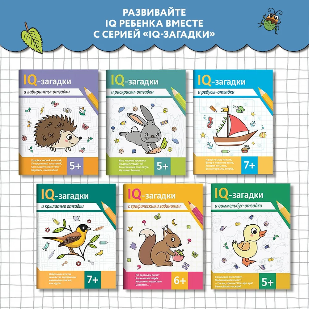 Серия: IQ-загадки Книга содержит познавательные кроссворды, ребусы и загадки на разнообразные темы, интересные ребёнку. Выполняя нестандартные задания и oтвечая на вопросы, дети расширяют словарный запас, развивают интеллект, любознательность и наблюдательность. Издание стимулирует учебную мотивацию и помогает весело провести досуг.