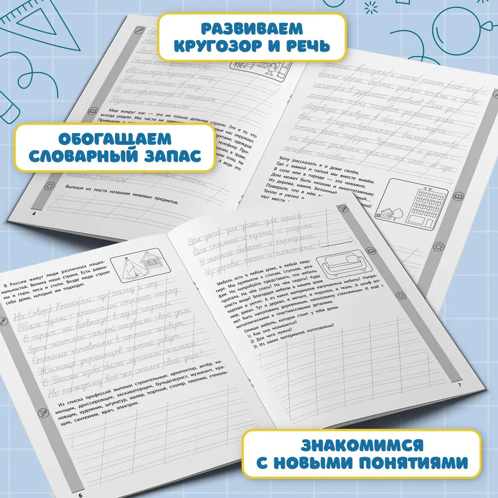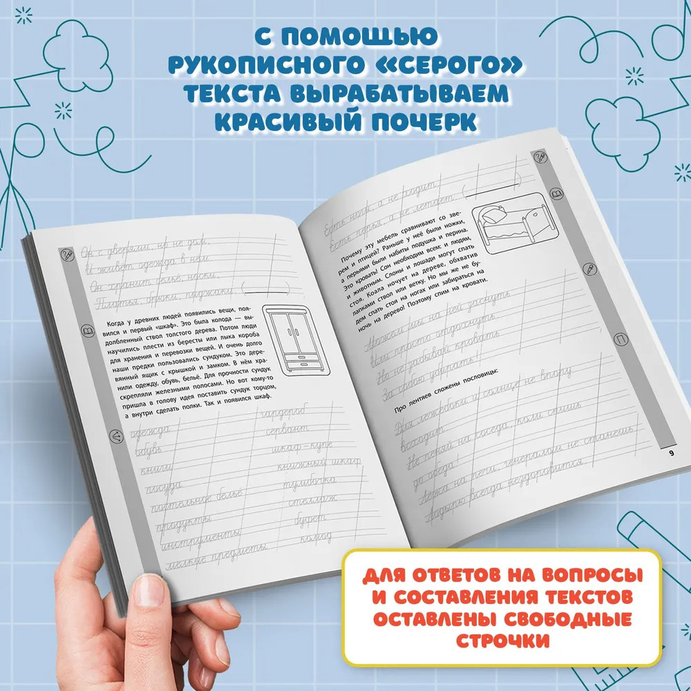 💳 Оплатить за товар можно при получении 🇰🇿 Есть бесплатная доставка по Казахстану от 1 дня 🎁 Копите бонусы с каждой покупки Серия: Красивый почерк Тренажёр предназначен для комплексного развития разных практических навыков и умений ученика начальной школы и соответствует ФГОС. Цель пособия — закрепить навыки чтения и письма, способствовать выработке красивого почерка, развить кругозор и дать новые знания в формате небольших увлекательных текстов. Наполнение тренажёра разнообразное: короткие рассказы, загадки, пословицы, рисунки для раскрашивания. Тренажёр даёт ребёнку возможность поработать самостоятельно и проявить творческие способности. Отвечая на вопросы, составляя тексты, ученик развивает тем самым мыслительные и логические навыки. Автор тренажёра надеется, что пособие будет полезно для работы как во внеурочное время в начальных классах, так и дома. |