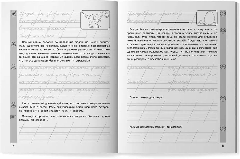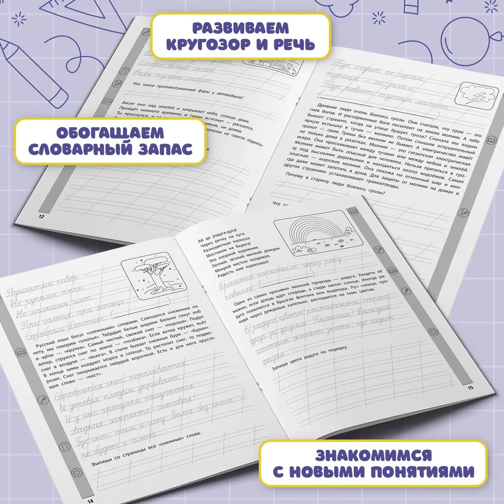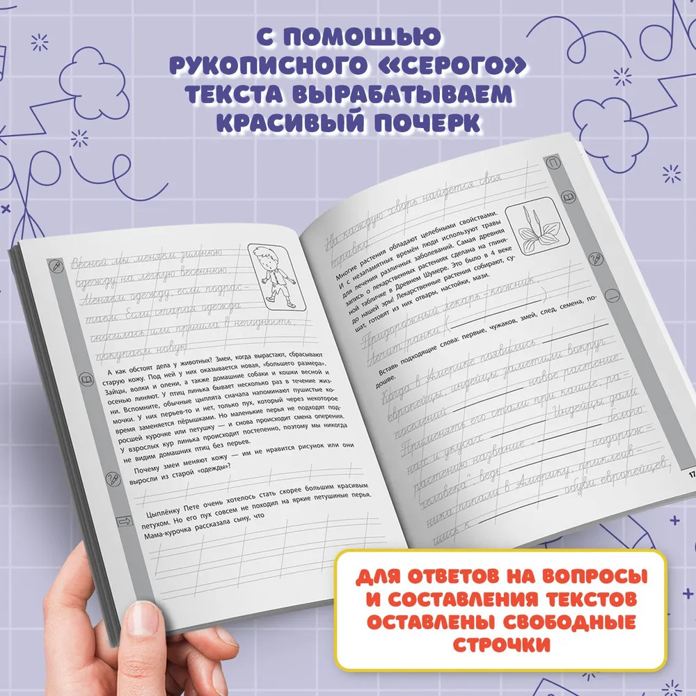 Серия: Красивый почерк Тренажёр предназначен для комплексного развития разных практических навыков и умений ученика начальной школы и соответствует ФГОС. Цель пособия — закрепить навыки чтения и письма, способствовать выработке красивого почерка, развить кругозор и дать новые знания в формате небольших увлекательных текстов. Наполнение тренажёра разнообразное: короткие рассказы, загадки, пословицы, рисунки для раскрашивания. Тренажёр даёт ребёнку возможность поработать самостоятельно и проявить творческие способности. Отвечая на вопросы, составляя тексты, ученик развивает тем самым мыслительные и логические навыки. Автор тренажёра надеется, что пособие будет полезно для работы как во внеурочное время в начальных классах, так и дома. |