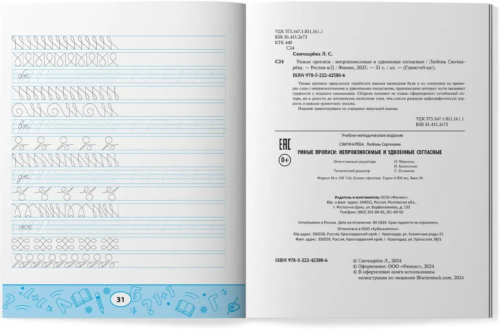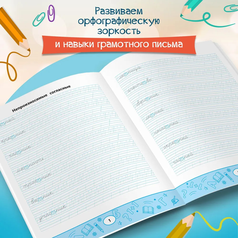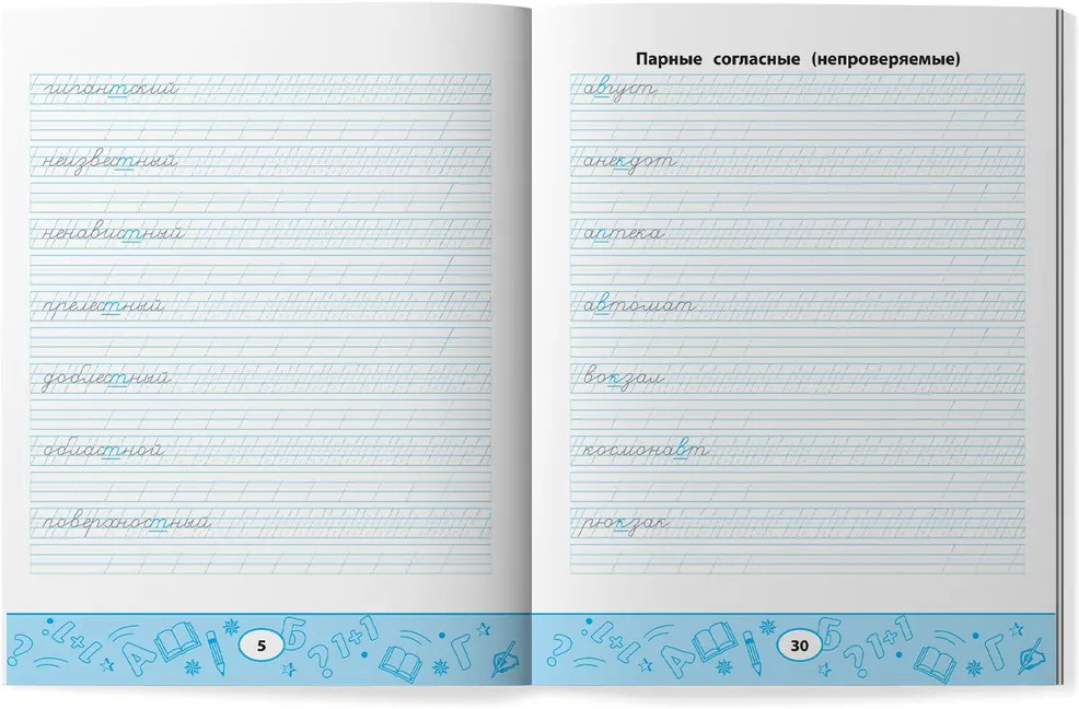 Умные прописи. Непроизносимые и удвоенные согласныеВ данный момент этот товар отсутствует в продаже. Возможно, у нас найдется аналогичный или похожий товар здесь. Серия: Грамотей-ка! Умные прописи предлагают отработать навыки написания букв и их элементов на примерах слов с непроизносимыми и удвоенными согласными, правописание которых часто вызывает трудности у младших школьников. Сборник поможет не только сформировать устойчивый почерк, но и довести до автоматизма написание слов, тем самым развивая орфографическую зоркость и навыки грамотного письма. Издание ориентировано на учащихся начальной школы. |