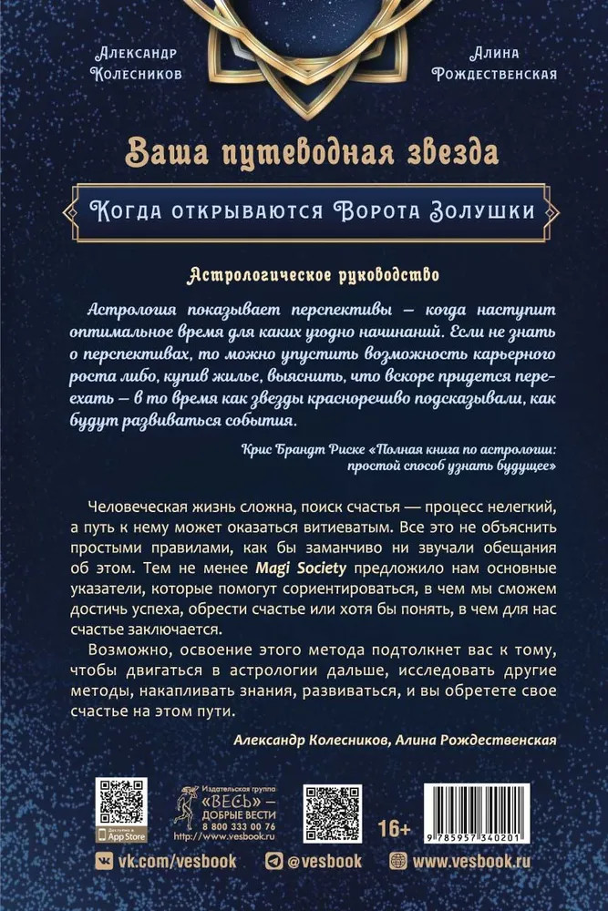Ваша путеводная звезда. Когда открываются Ворота Золушки. Астрологическое руководствоАлександр Геннадьевич Колесников В данный момент этот товар отсутствует в продаже. Возможно, у нас найдется аналогичный или похожий товар здесь. Ваша путеводная звезда. Когда открываются Ворота Золушки. Астрологическое руководство . |