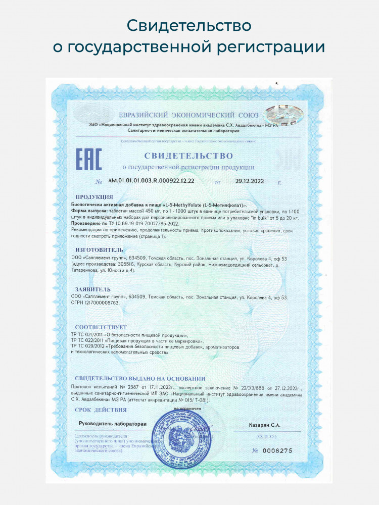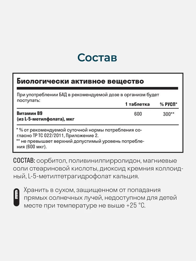 Показания: в качестве биологически активной добавки к пище — как дополнительного источника фолиевой кислоты.
