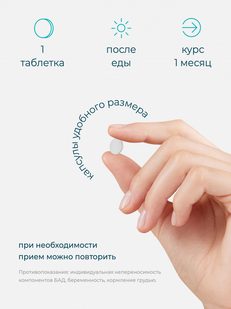 Рекомендации по применению: взрослым по 1 таблетке в день после еды, запивая достаточным количеством воды.