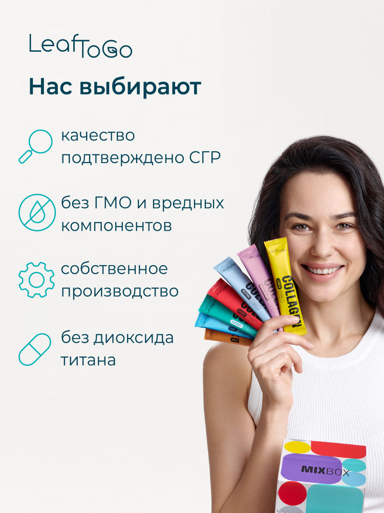 Мы — команда LeafToGo, российского производителя коллагенов и БАДов для здоровой и активной жизни, рады видеть вас на странице своего товара. Наше кредо: «Забота о себе, как стиль жизни.» Благодаря собственному производству и строгому контролю качества продукции, каждый год мы выпускаем всё больше полезных добавок с заботой о покупателях. Приглашаем посетить страницу нашего магазина, кликнув на изображение логотипа в карточке товара и ознакомиться с широкой продуктовой линейкой бренда LeafToGo. Превратите ежедневный прием витаминов в ритуал заботы о себе, и наслаждайтесь хорошим самочувствием!