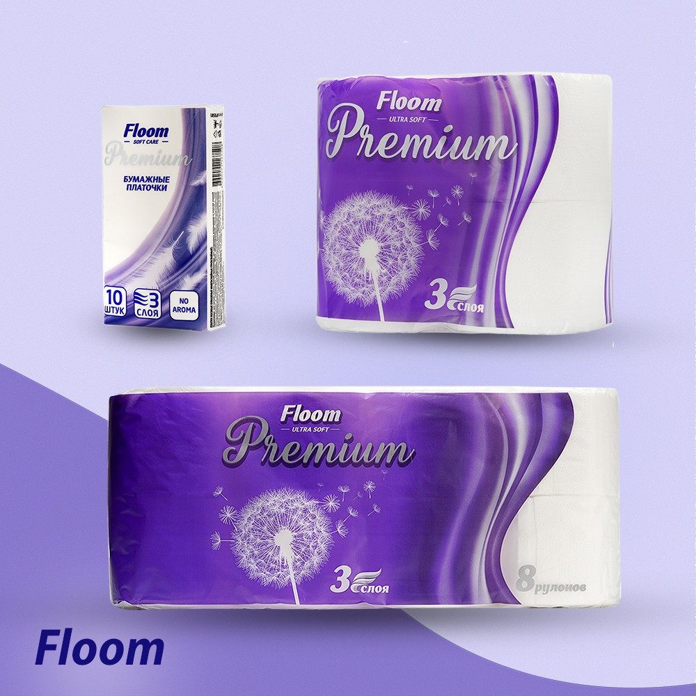 Бумажные полотенца, влажная туалетная бумага, а также бумажные салфетки торговой марки «Floom» создают ощущение свежести и комфорта. |