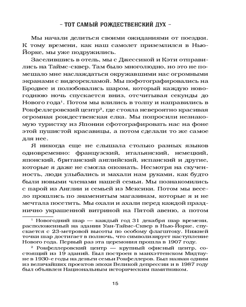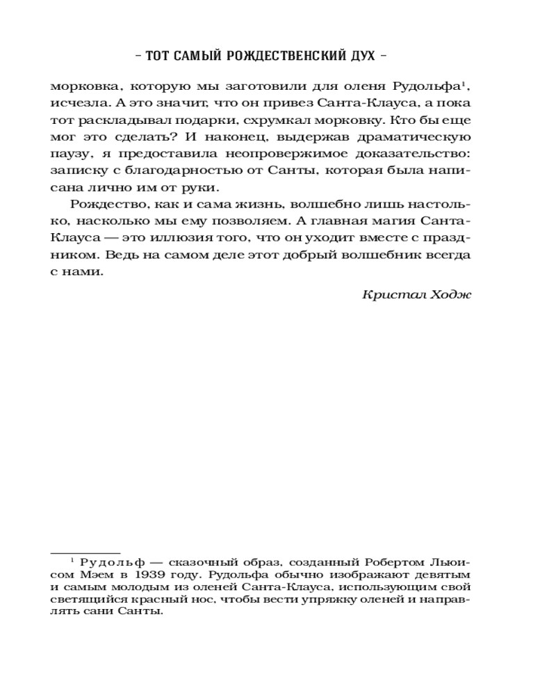 Создалось впечатление, что дух Рождества в Америке - это только подарки, Санта и праздничный стол. Просто добрый старинный праздник. А ведь суть Рождества - это День рождения Иисуса Христа. Об этом в книге почти ничего нет. Почитать можно, но духа Рождества я в этой книге не почувствовала.
