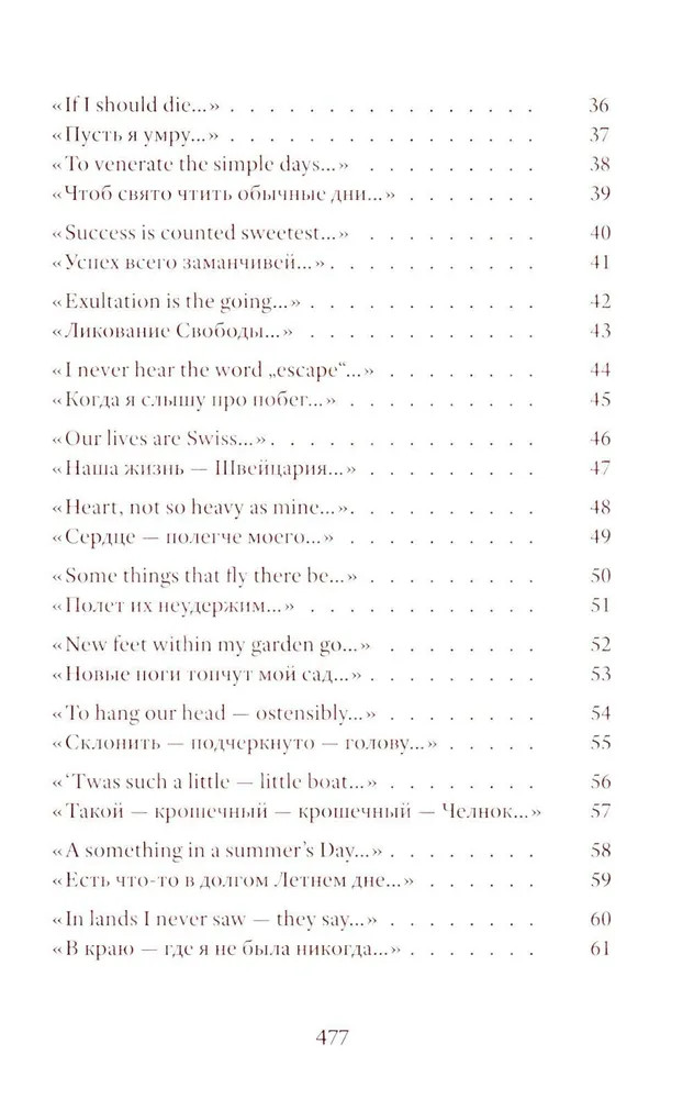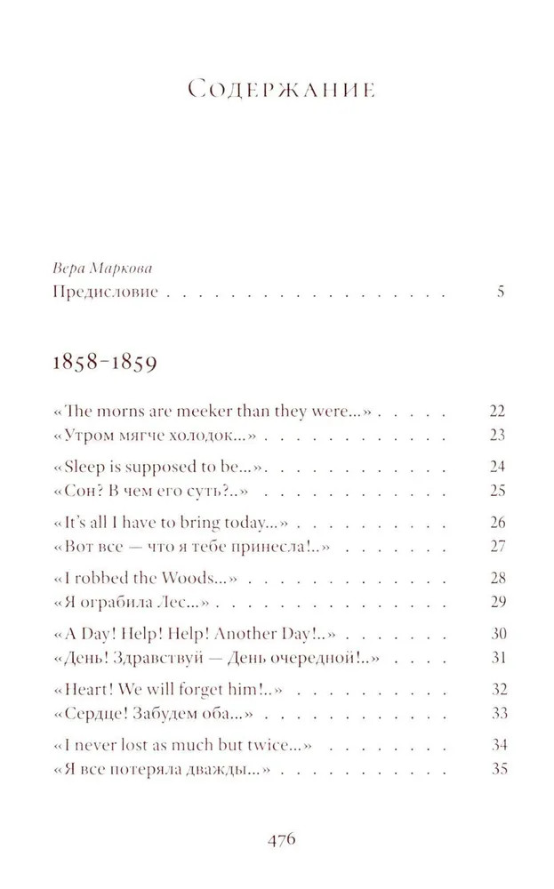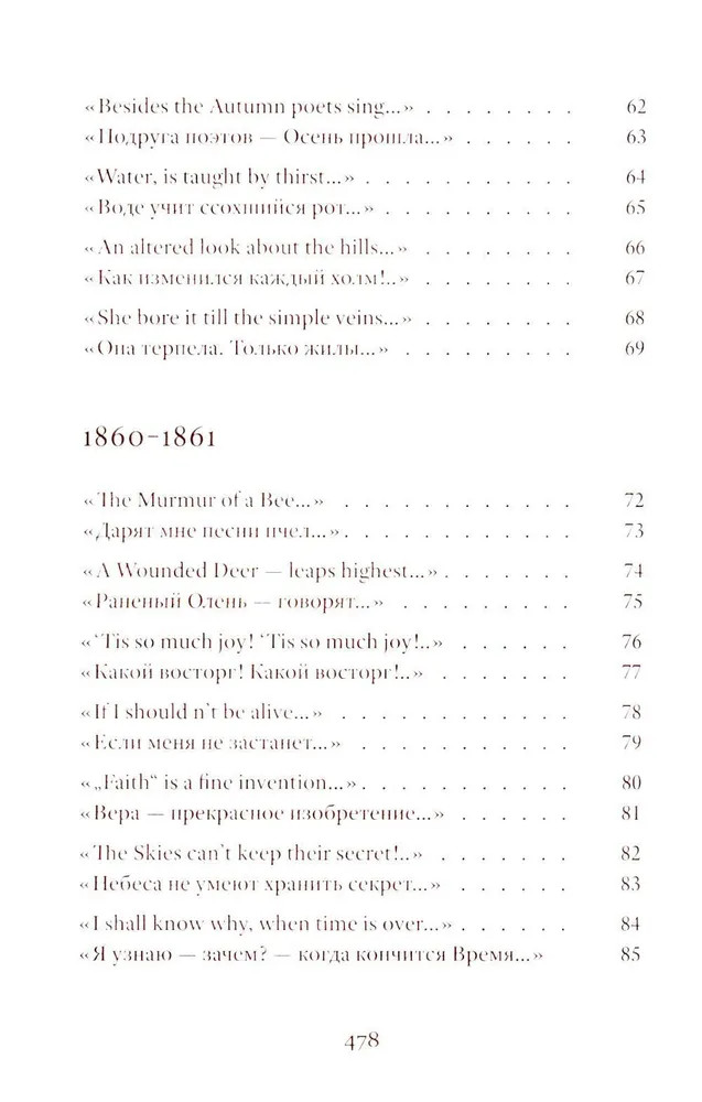 СтихотворенияВ данный момент этот товар отсутствует в продаже. Возможно, у нас найдется аналогичный или похожий товар здесь. Серия: Отдельные издания Издание представляет собой двуязычное собрание стихотворений Эмили Дикинсон (1830-1886), американской поэтессы, жизнь которой до сих пор окружена загадками. Ее поэтическое видение соткано из тонких и преднамеренно непрозрачных образов. Ее поэзия заключает в себе острый накал чувств и стилистическую сдержанность. Стихотворения представлены в переводе Веры Марковой. Вера Маркова (1907-1995) — поэт и переводчик, филолог, исследователь японской классической литературы. Сходство творческих судеб создает особую связь между оригиналом и переводом, позволяя последнему с исключительной чувственностью проникать в глубину поэтической мысли. |