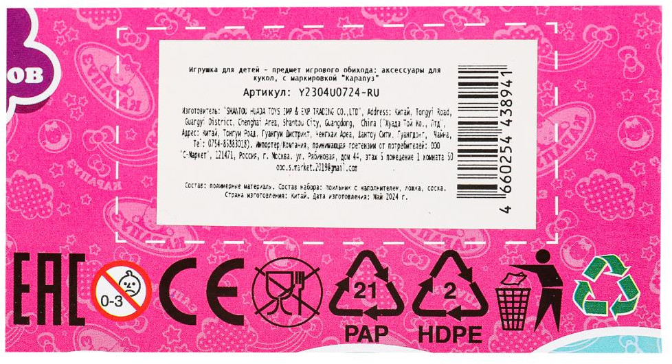 Карапуз Набор аксессуаров для пупса-35% +13