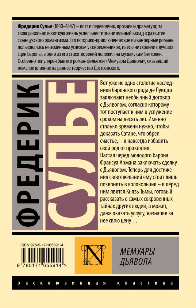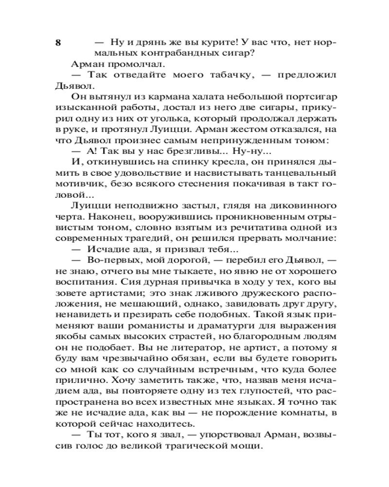 💳 Оплатить за товар можно при получении 🇰🇿 Есть бесплатная доставка по Казахстану от 1 дня 🎁 Копите бонусы с каждой покупки Серия: Эксклюзивная классика Вот уже не одно столетие наследники баронского рода де Луицци заключают необычный договор с Дьяволом, согласно которому тот поступает к ним в услужение сроком на десять лет. Именно столько времени нужно, чтобы доказать Сатане, что обрел счастье, — и навсегда избавить свой род от проклятия. Настал черед молодого барона Франсуа Армана заключать сделку с Дьяволом. Теперь для достижения своих желаний ему стоит лишь позвонить в колокольчик — и перед ним явится Князь Тьмы, готовый рассказать о самых сокровенных тайнах других людей, а может, даже оказать услугу, назначив за нее свою цену... |