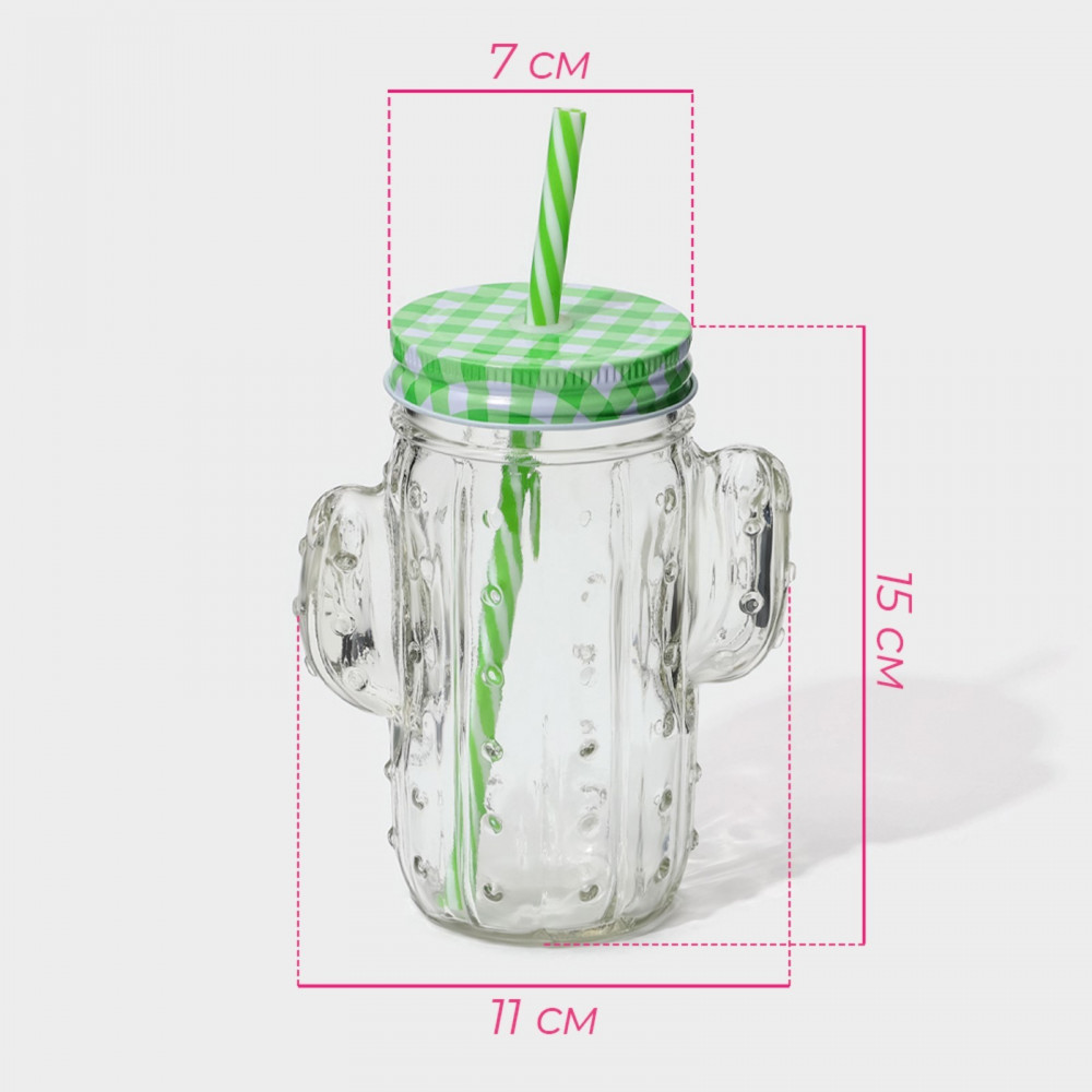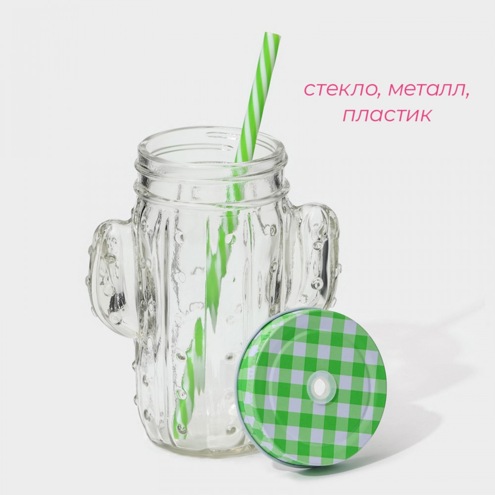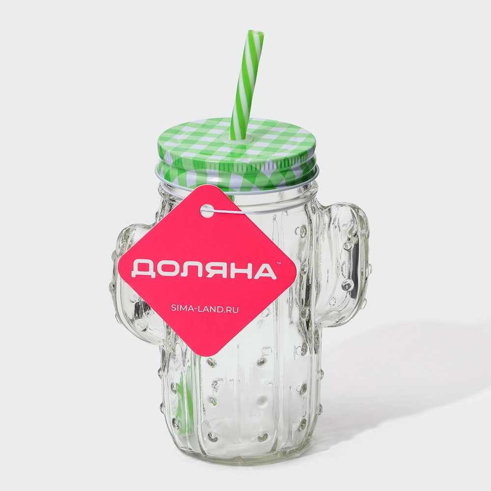 Доляна Кружка с крышкой и трубочкой «Кактус»-25% +57