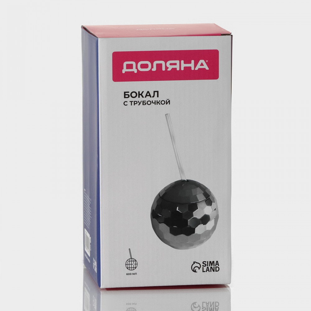 Доляна Бокал с крышкой и трубочкой «Сияние»