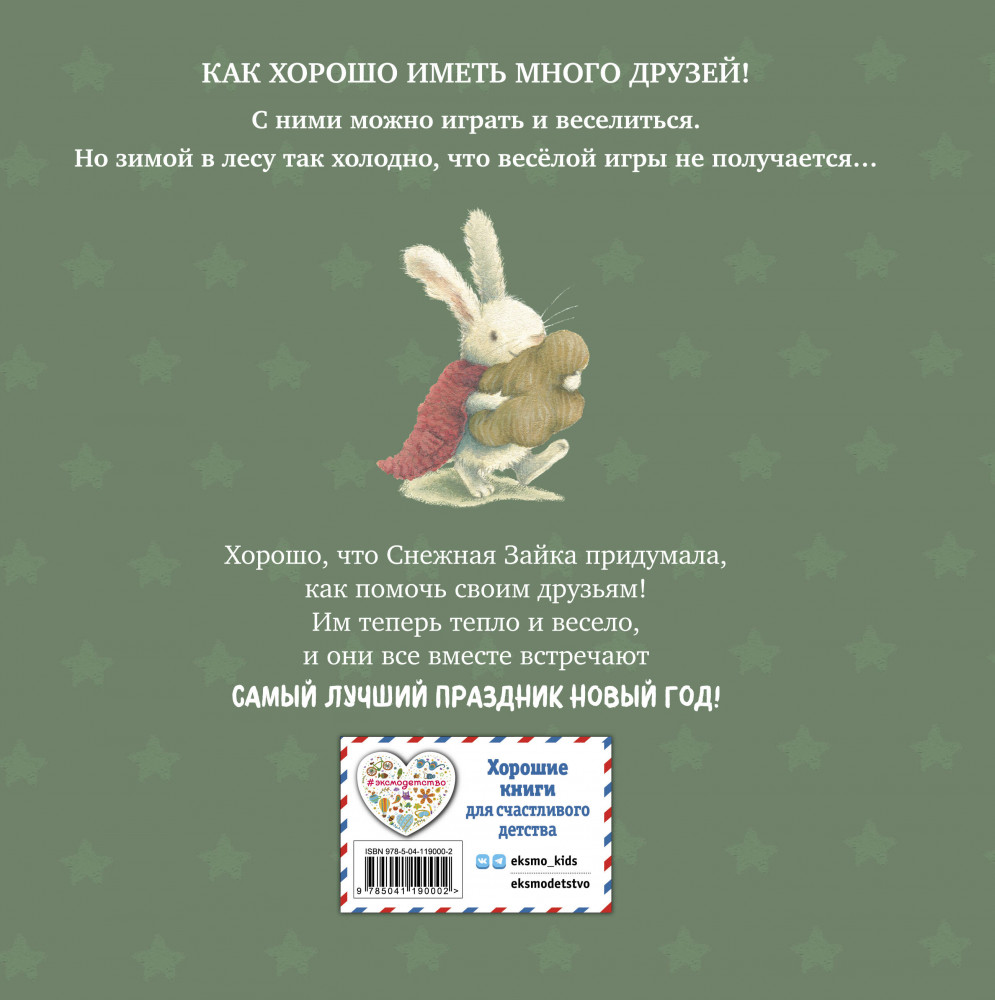 Новогодние подарки Снежной ЗайкиВ данный момент этот товар отсутствует в продаже. Возможно, у нас найдется аналогичный или похожий товар здесь. Серия: Книжки к Новому Году Как весело играть с друзьями в снежки, кататься на коньках и на санках! Но как же быть, если твоим друзьям холодно зимой и они убегают по домам? Маленькая Снежная Зайка обязательно что-нибудь придумает, чтобы никто не скучал в одиночестве! Добрая «пушистая» история научит маленьких читателей верить в чудеса и творить их своими руками. Ведь так приятно не только получать подарки, но и делать их самому. Как же хорошо, когда все вокруг веселятся и радуются! Сказка прекрасно подходит для первого самостоятельного чтения, а блестящие иллюстрации будет с удовольствием рассматривать вся семья! |