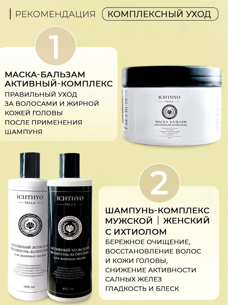 Ichthyonella Маска-бальзам для жирных волос от перхоти с ихтиолом «Активный комплекс»