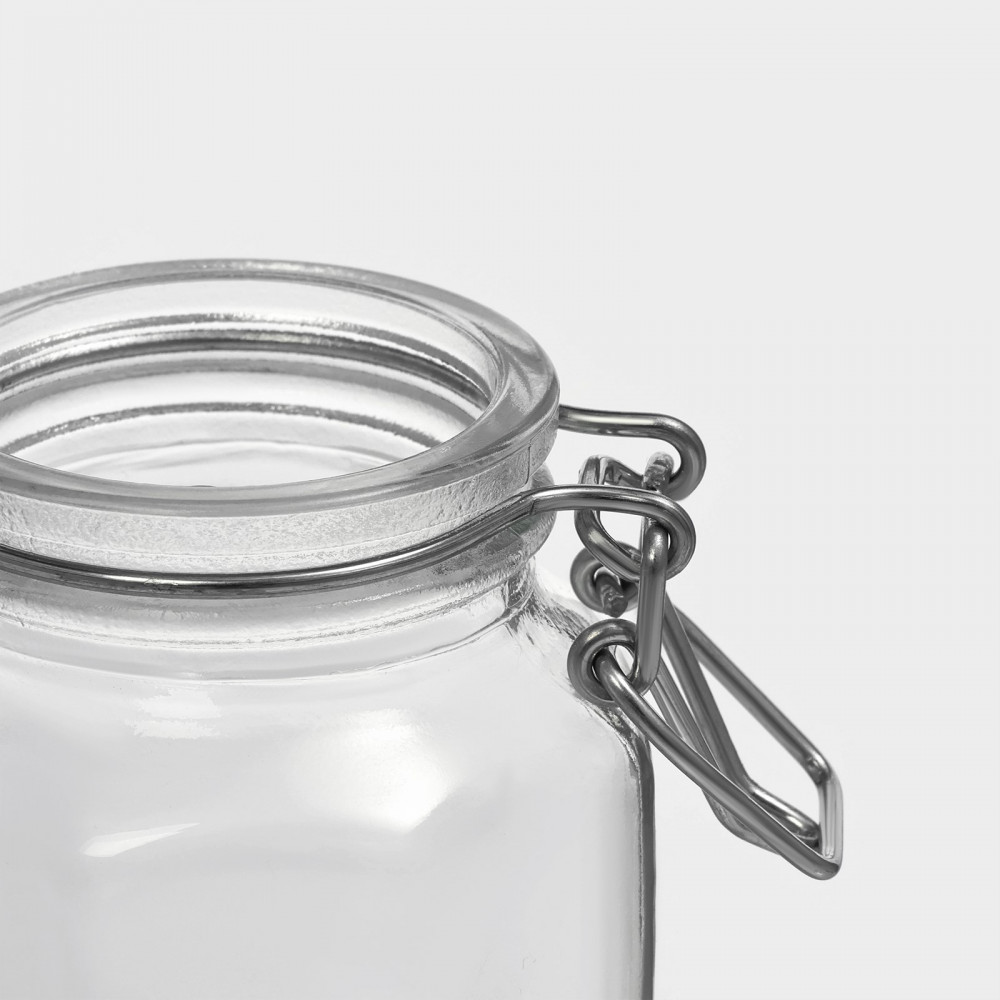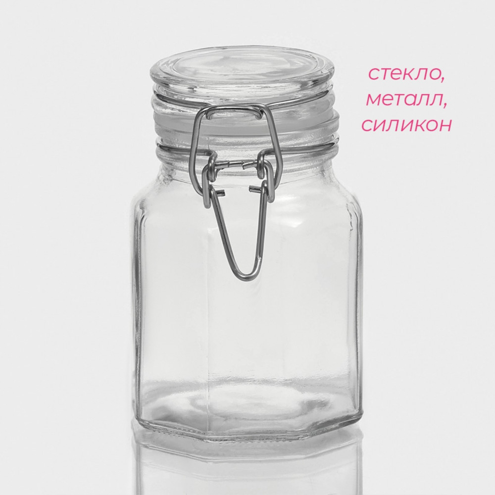 Банка стеклянная для хранения сыпучих продуктов «Грани» от Доляна. Бугельный замок с шестью гранями обеспечивает надёжное закрытие и сохранение свежести продуктов внутри. Банка выполнена из высококачественного стекла, которое не впитывает запахи и не окрашивается. Благодаря элегантному дизайну она станет прекрасным дополнением к любой кухне и впишется в любой интерьер.