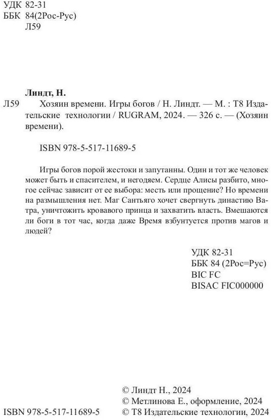 Серия: Хозяин времени Игры богов порой жестоки и запутанны. Один и тот же человек может быть и спасителем, и негодяем. Сердце Алисы разбито, многое сейчас зависит от ее выбора: месть или прощение? Но времени на размышления нет. Маг Сантьяго хочет свергнуть династию Ватра, уничтожить кровавого принца и захватить власть. Вмешаются ли боги в тот час, когда даже Время взбунтуется против магов и людей? |