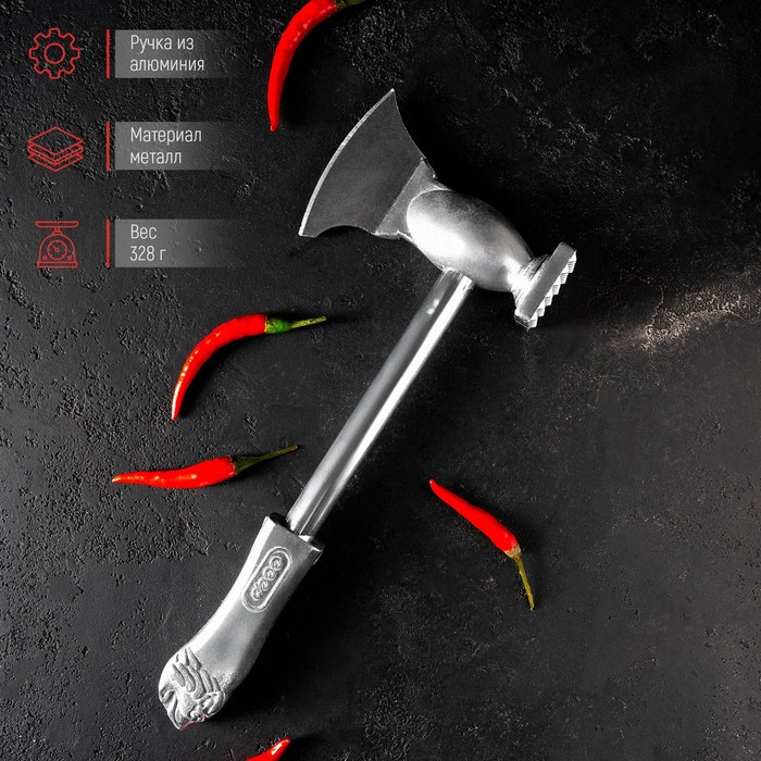 Молоток для отбивки мяса сделает традиционное мясное блюдо особенно мягким и деликатным. Кухонный инструмент выполнен из прочного материала. Надёжная конструкция сделает достаточно утомительный кулинарный процесс удобнее и легче. С обратной стороны молотка находится компактный топорик. С его помощью можно легко разделать мясо, перерубить толстые жилы. Готовьте с лёгкостью и комфортом!