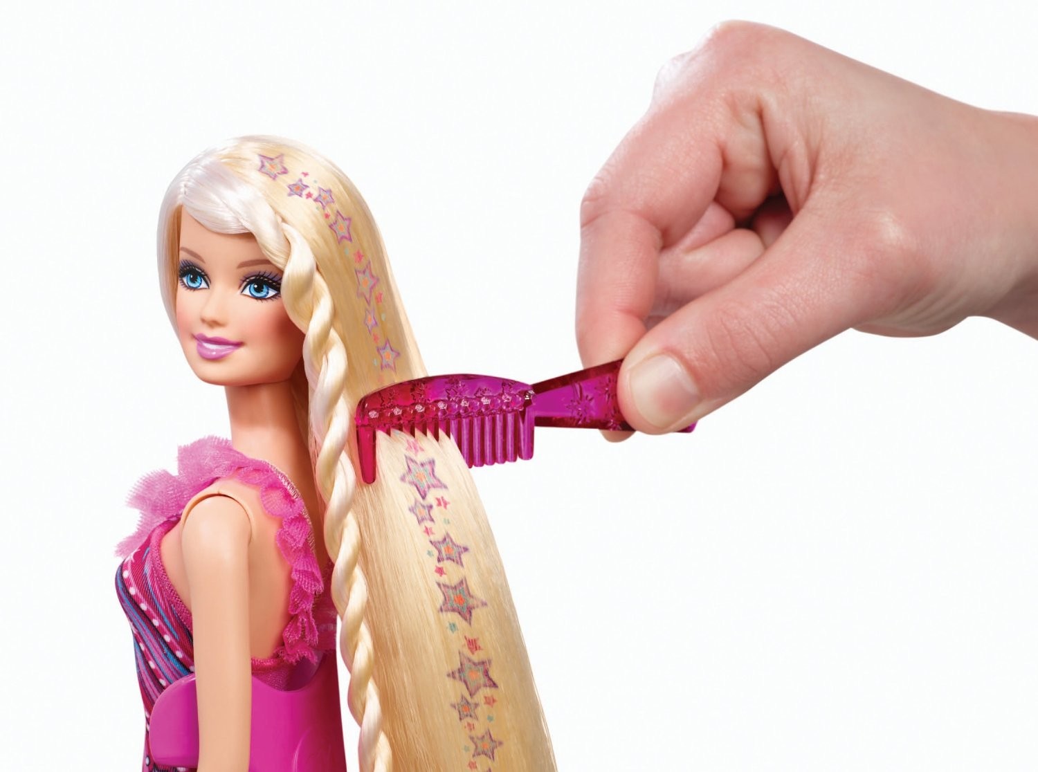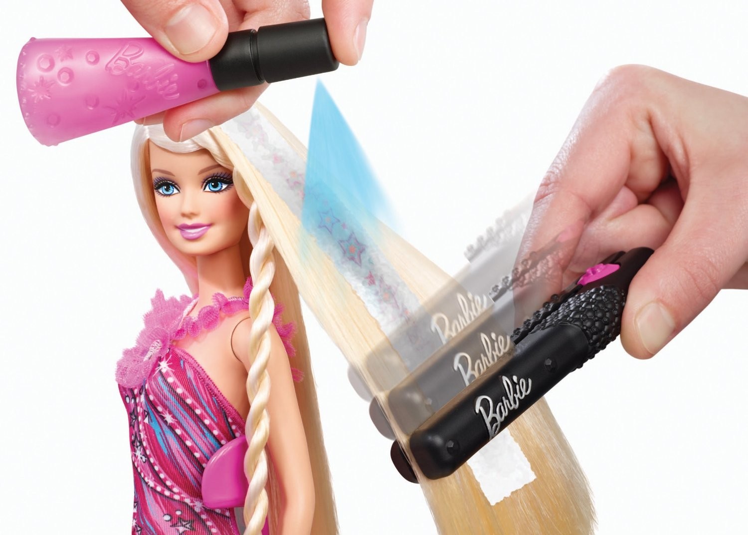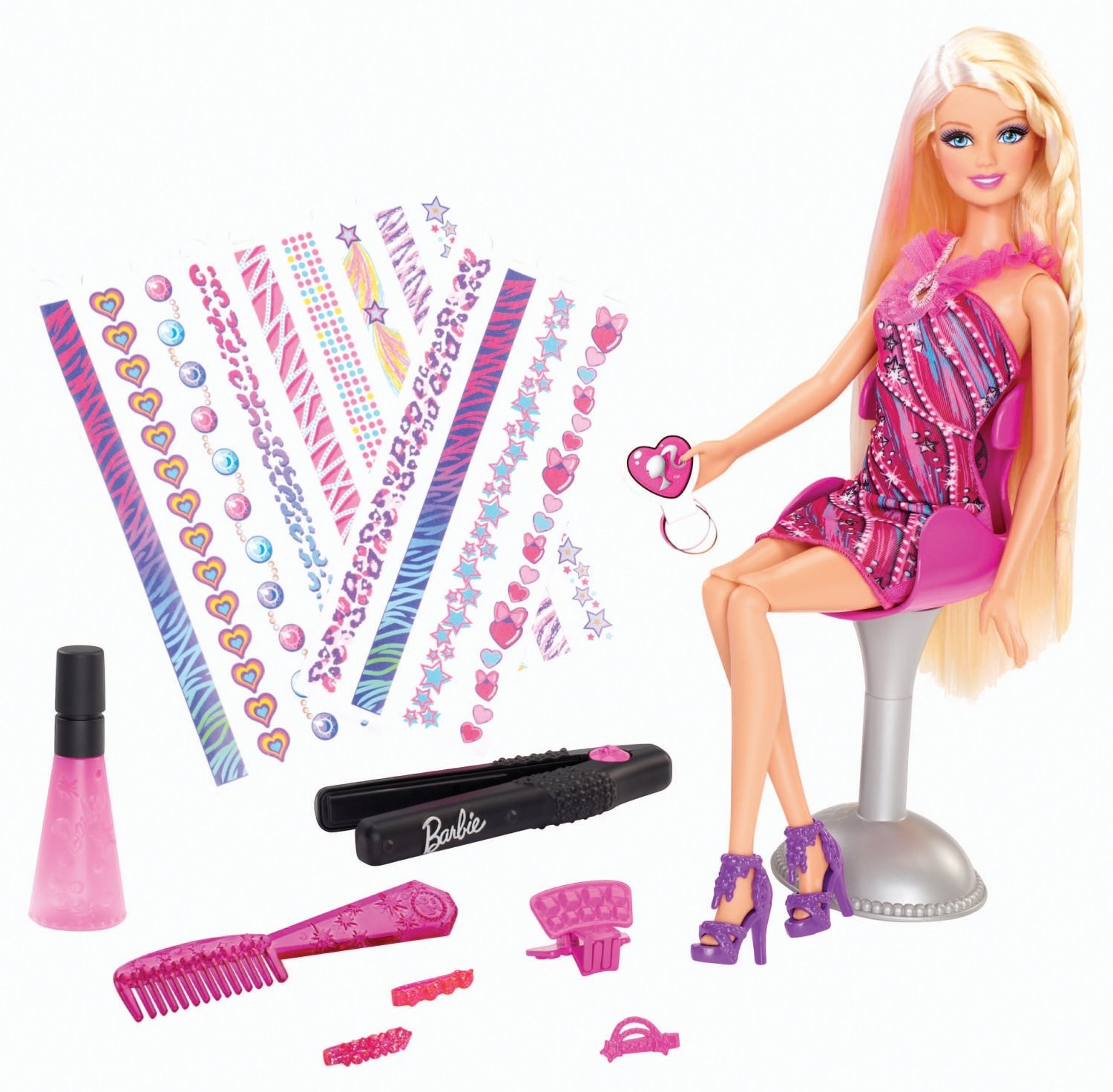 Mattel. Inc. Барби с набором для создания причесокВ данный момент этот товар отсутствует в продаже. Возможно, у нас найдется аналогичный или похожий товар здесь. Теперь кукла Барби может хоть каждый день менять прически! Все просто - посадите свою куколку Барби в игрушечное парикмахерское кресло, смочите ее волосы с помощью специального балончика из набора, приложите принт с узором к волосам и проведите утюжком. И вот, как по волшебству, кукла BARBIE стала еще прекрасней! Особенность игрового набора в том, что узоры легко смываются шампунем и вы можете придумывать и делать множество раз новые, уникальные прически для куклы. |