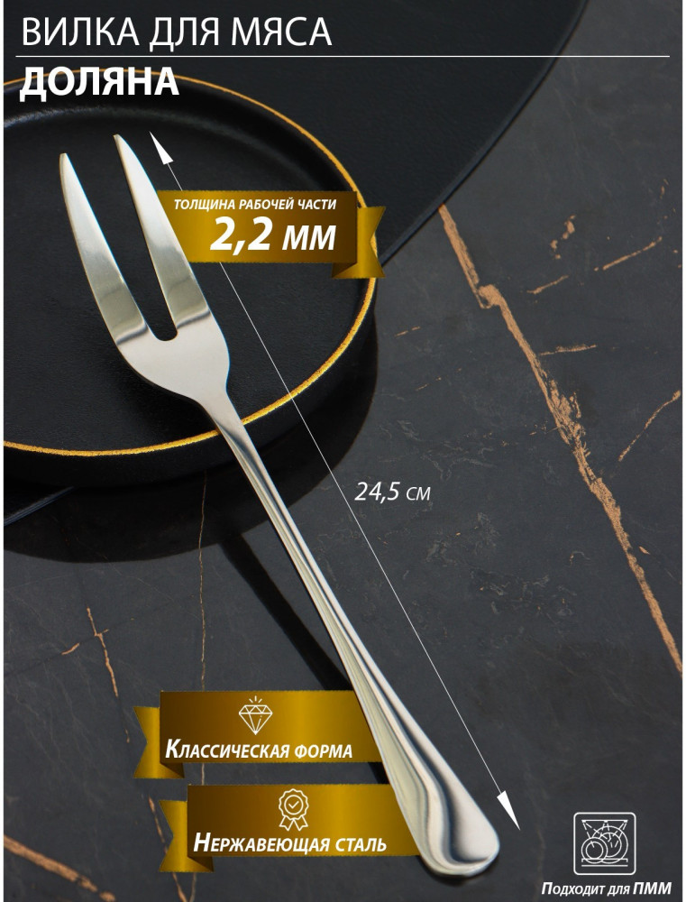 Доляна Вилка для мясаВ данный момент этот товар отсутствует в продаже. Возможно, у нас найдется аналогичный или похожий товар здесь. Серия: Уют Столовые приборы Доляна серии «Уют» изготовлены из нержавеющей стали 410 марки. Все приборы этой серии имеют классический стильный дизайн, поэтому подойдут как для повседневной, так и для праздничной сервировки. Лаконичный вид и высокое качество исполнения столовых приборов добавит стиля к сервировке праздничного стола и комфорта в повседневном использовании. Приборы имеют оптимальную толщину, они не гнутся и прослужат вам долго. Можно мыть в посудомоечной машине. |