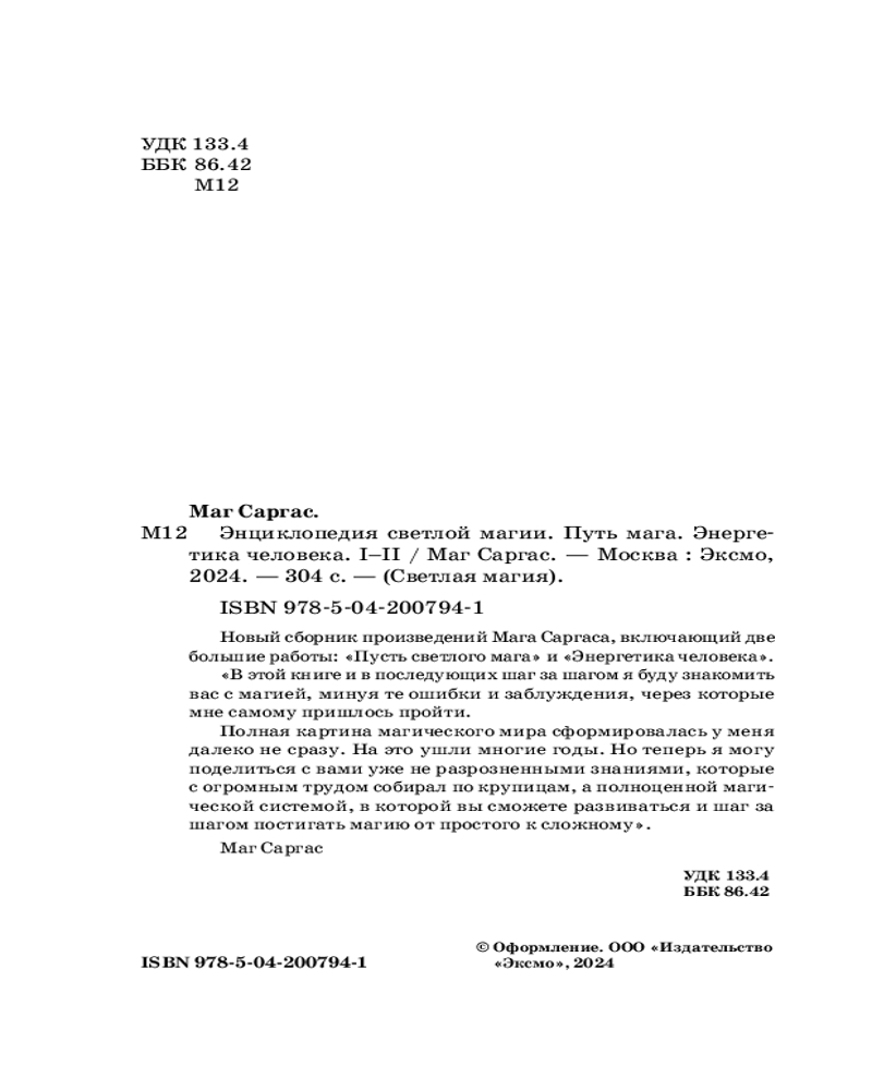 Серия: Светлая магия Новый сборник произведений Мага Саргаса, включающий две большие работы: «Путь светлого мага» и «Энергетика человека».