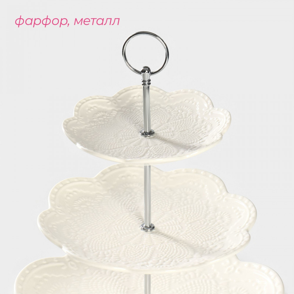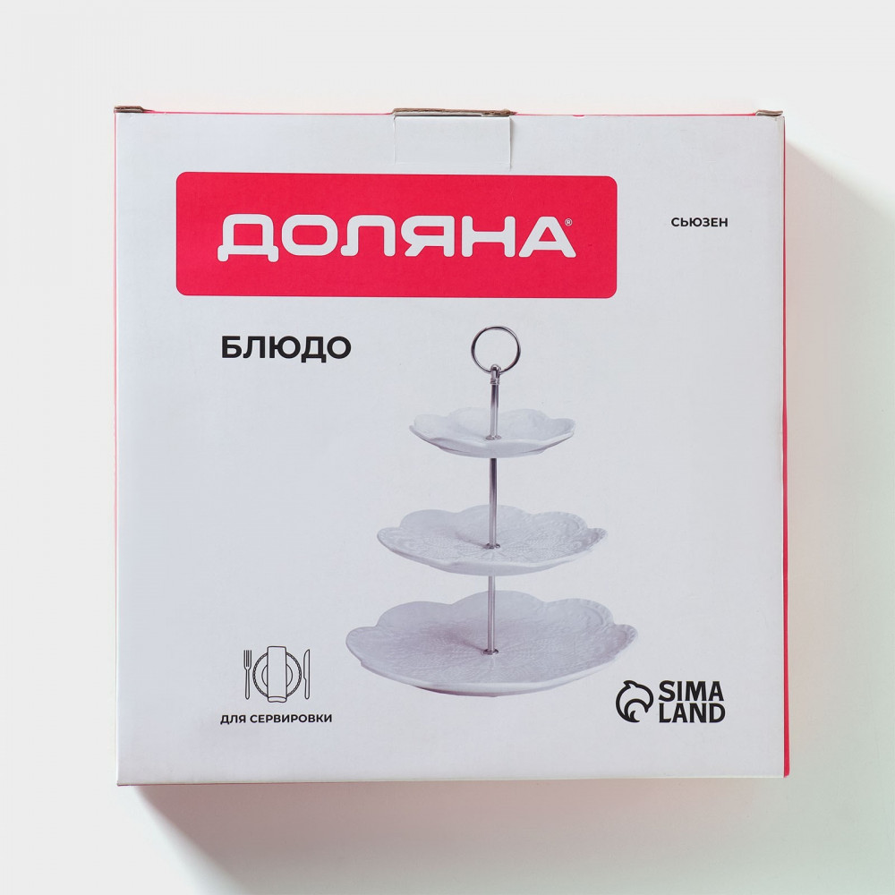 Доляна Блюдо-этажерка сервировочное трехъярусное «Сьюзен»В данный момент этот товар отсутствует в продаже. Возможно, у нас найдется аналогичный или похожий товар здесь. Серия: Сьюзен Фарфоровое трехярусное блюдо Доляна «Сьюзен» придаст оригинальный вид любому столу и будет украшением при сервировке. Элегантная посуда позволит удобно и красиво разместить на столе фрукты, кондитерские изделие или различные закуски. |
