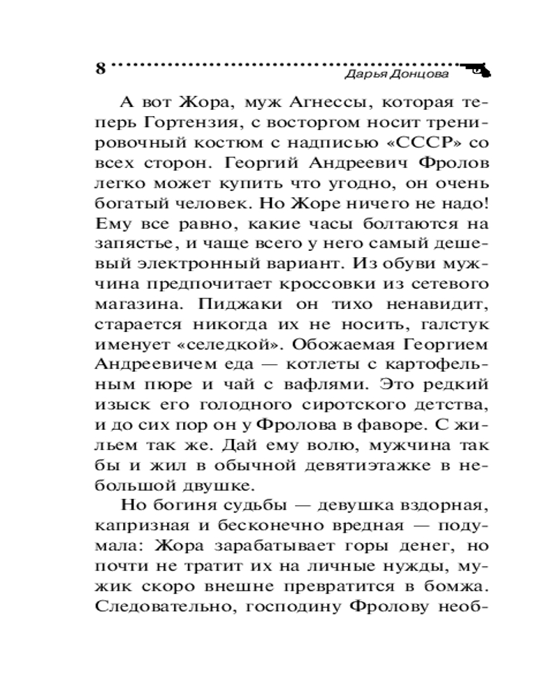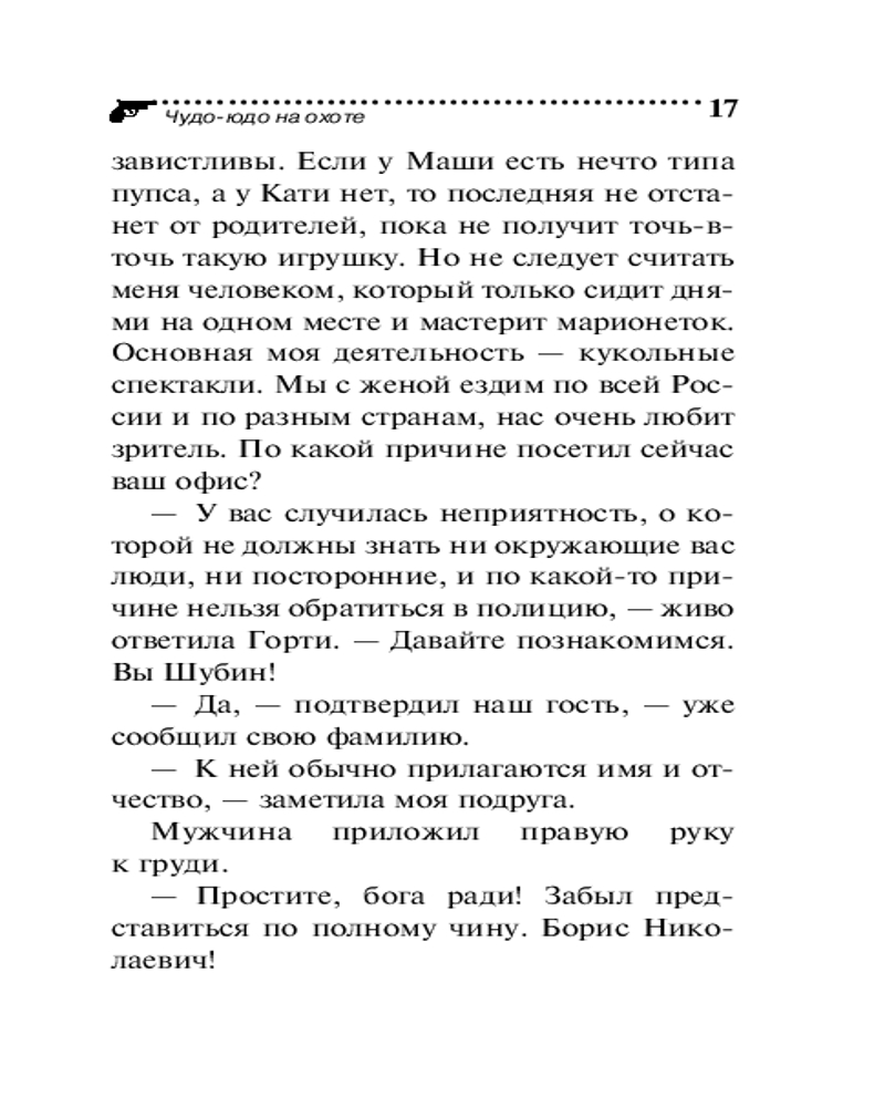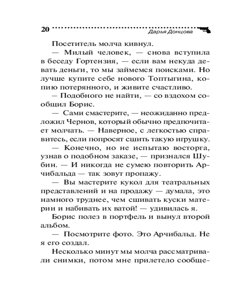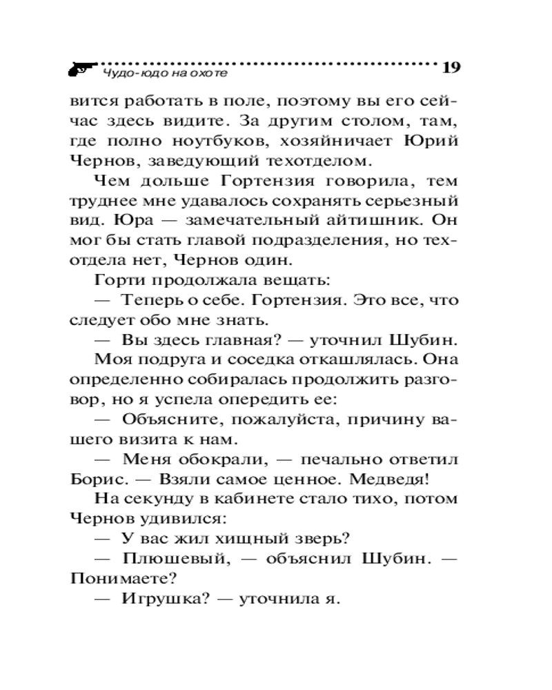 💳 Оплатить за товар можно при получении 🇰🇿 Есть бесплатная доставка по Казахстану 🎁 Копите бонусы с каждой покупки Серия: Иронический детектив (обложка) «Меня обокрали, взяли самое ценное. Медведя! Плюшевого!» — с такими словами в агентство Макса Вульфа обратился странный посетитель. Дело в том, что пропал медведь не простой, а «золотой». Арчибальд был расшит золотыми нитями и драгоценными камнями с ног до головы. Эта наследственная реликвия досталась Борису Шубину от родовитых предков. В один не прекрасный день Шубин обнаружил пропажу раритета. Камеры наблюдения зафиксировали его дочь Мирославу, которая вынесла медведя из спальни. Девочка выглядела странно — застывший взгляд, шаткая походка. После того как отец предъявил дочери запись, Мира приняла какие-то препараты, оказалась в больнице и теперь ни на что не реагирует. А медведя так след и простыл. Шубин просит Евлампию найти Арчи и того, кто, возможно, опоил дочь, чтобы присвоить драгоценную игрушку. Лампа за расследование взялась с большим энтузиазмом, очень уж интересным показалось дело. Но когда Романова поняла, кто эту кашу заварил, то даже отказалась от гонорара, настолько она была шокирована... |