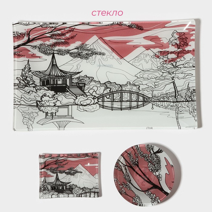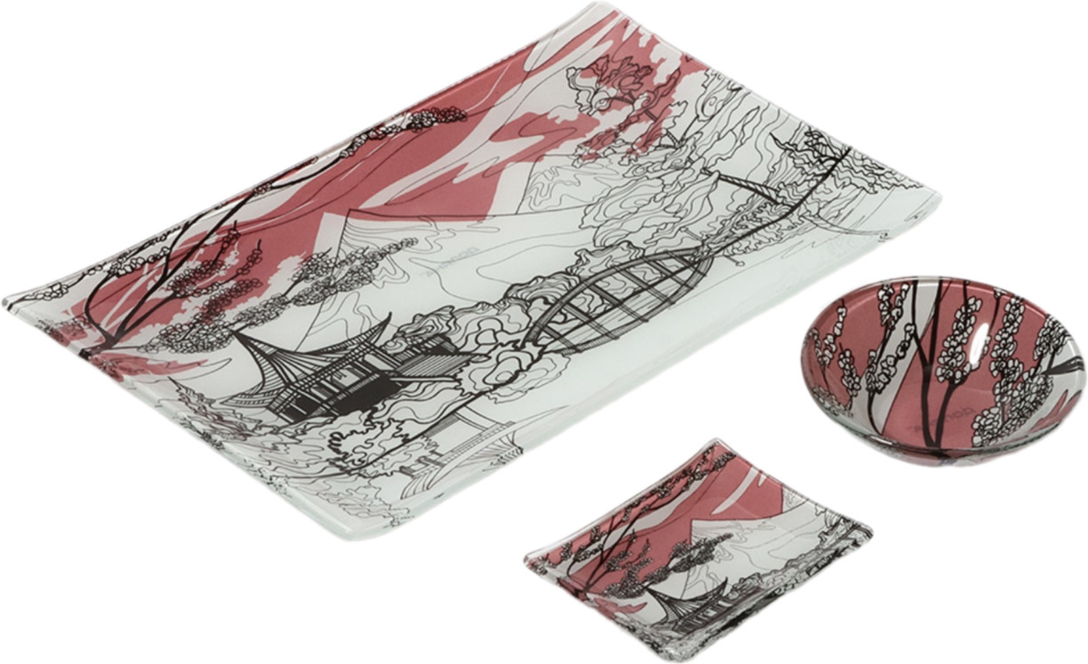 Набор для суши Доляна изготовлен из качественного стекла. Набор включает в себя подставку для суши и два соусника. Такая посуда прекрасно дополнит сервировку в классическом или азиатском стиле и станет отличным подарком близкому человеку.