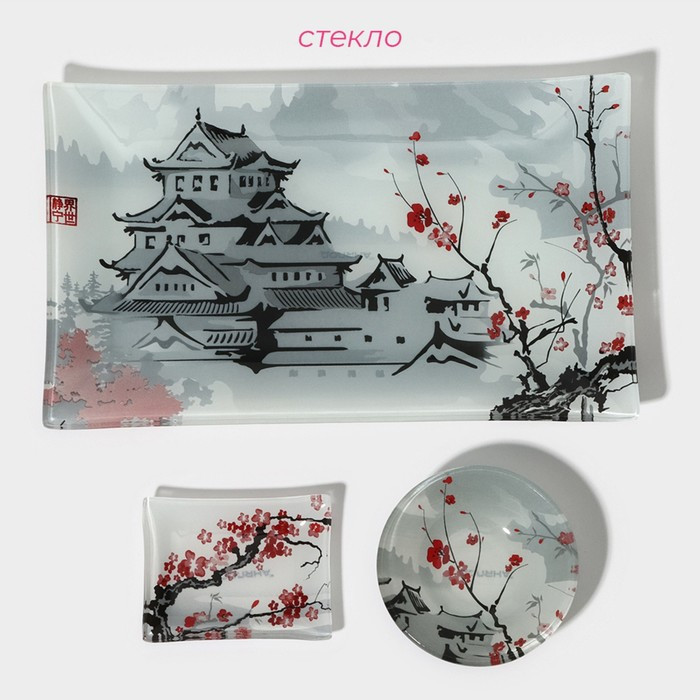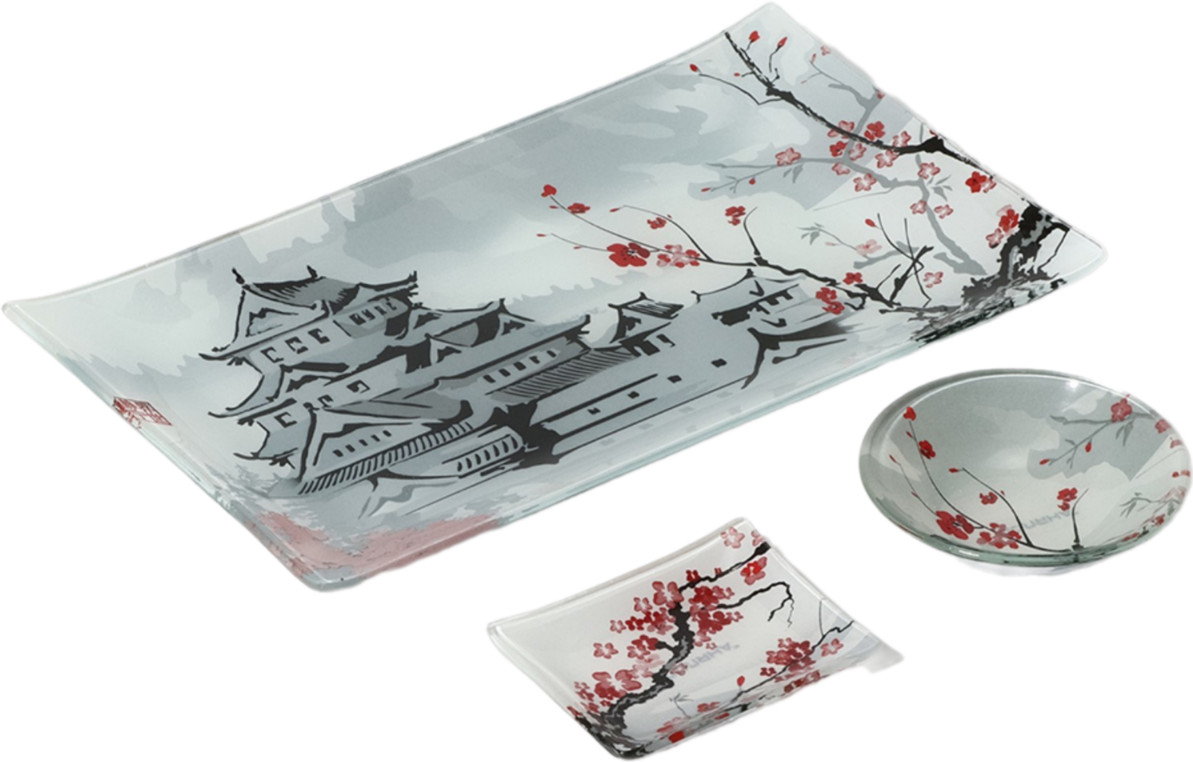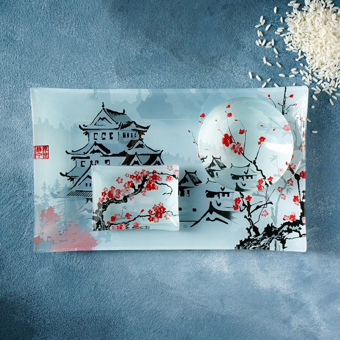 Набор для суши Доляна изготовлен из качественного стекла. Набор включает в себя подставку для суши и два соусника. Такая посуда прекрасно дополнит сервировку в классическом или азиатском стиле и станет отличным подарком близкому человеку.