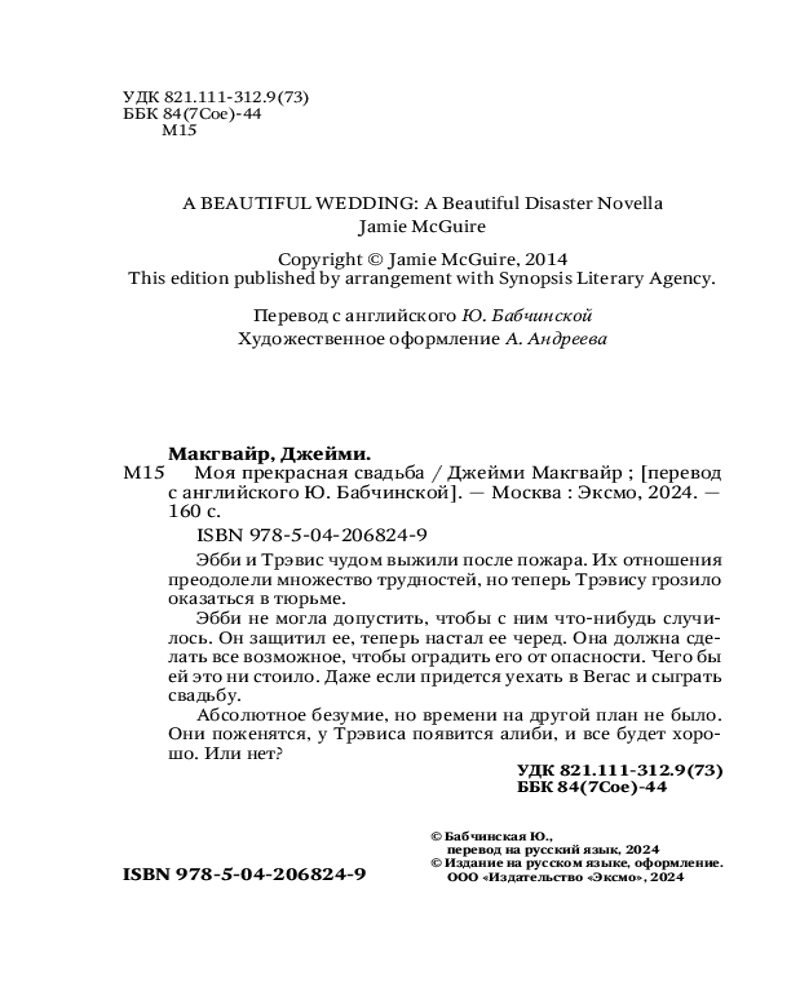 💳 Оплатить за товар можно при получении 🇰🇿 Есть бесплатная доставка по Казахстану от 1 дня 🎁 Копите бонусы с каждой покупки Серия: Young Adult. Экранизация Эбби и Трэвис чудом выжили после пожара. Их отношения преодолели множество трудностей, но теперь Трэвису грозило оказаться в тюрьме. Эбби не могла допустить, чтобы с ним что-нибудь случилось. Он защитил ее, теперь настал ее черед. Она должна сделать всё возможное, чтобы оградить его от опасности. Чего бы ей это ни стоило. Даже если придется уехать в Вегас и сыграть свадьбу. Абсолютное безумие, но времени на другой план не было. Они поженятся, у Трэвиса появится алиби, и всё будет хорошо. Или нет? Джейми Макгвайр — американский автор бестселлеров New York Times, USA Today и Wall Street Journal. |