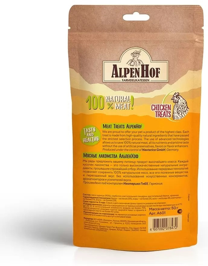 AlpenHof Лакомство для кошек «Сердечки из курицы»