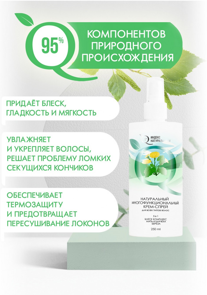 Индекс натуральности Крем-спрей для волос 5 в 1-20% +51 Большой объем приятный аромат пленка