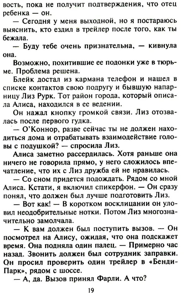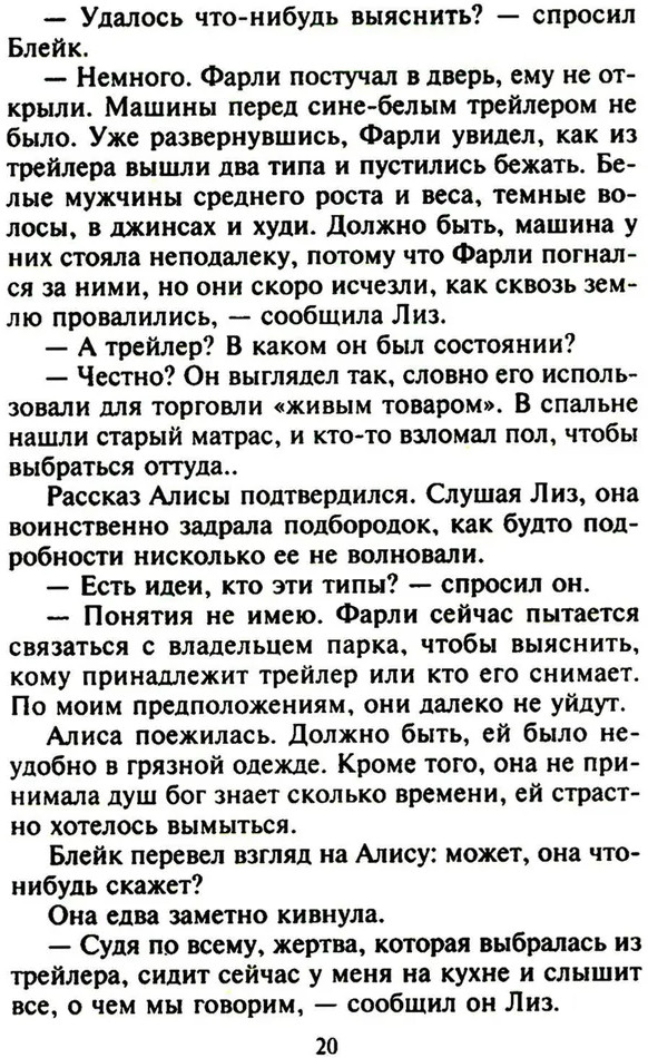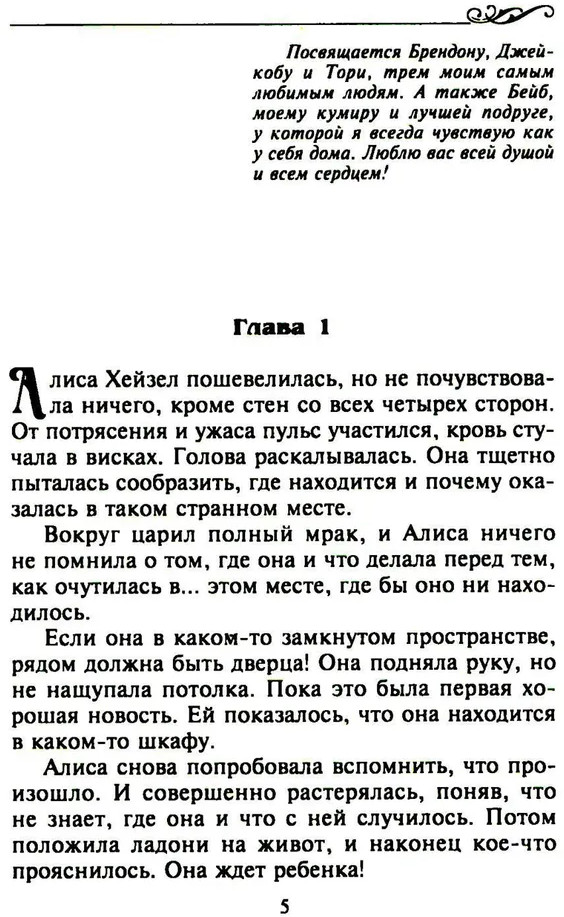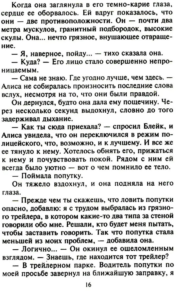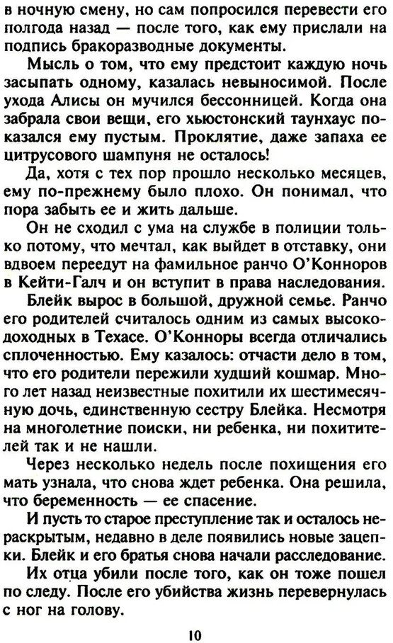 💳 Оплатить за товар можно при получении 🇰🇿 Есть бесплатная доставка по Казахстану от 1 дня 🎁 Копите бонусы с каждой покупки Серия: Интрига Алиса, находящаяся на позднем сроке беременности, приходит в себя в грязном трейлере и слышит, как за стеной переговариваются два бандита, и они собираются ее пытать, чтобы узнать что-то важное для них. Ей удается бежать, и бежит она к мужу, Блейку О’Коннору, представителю одной из богатейших семей в Техасе и сотруднику полиции. Но оказывается, Алиса несколько месяцев назад развелась с ним, хотя этого не помнит. Как не может вспомнить, что нужно от нее преступникам. Узнав о похищении бывшей жены, Блейк решает ей помочь, но в его прошлом тоже есть тайна: много лет назад неизвестные похитили его маленькую сестру... |