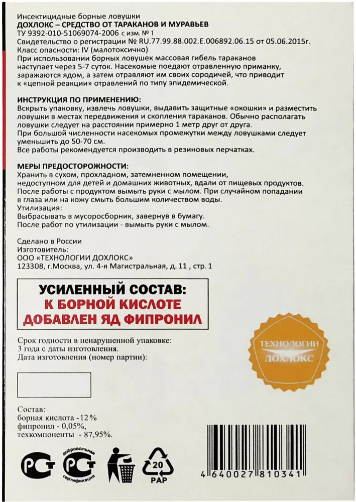 💳 Оплатить за товар можно при получении 🇰🇿 Есть бесплатная доставка по Казахстану от 1 дня 🎁 Копите бонусы с каждой покупки При использовании борных ловушек массовая гибель тараканов наступает через 5-7 суток. Насекомые поедают отравленную приманку, заражаются ядом, а затем отравляют им своих сородичей, что приводит к «цепной реакции» отравлений по типу эпидемической. |
