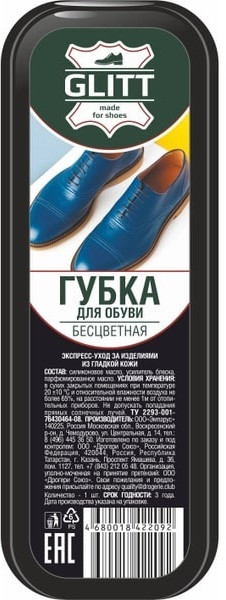 Бесцветная губка для обуви Glitt создана для мгновенного ухода за Вашей обувью и оснащена дозатором силикона. Губка с антистатическим эффектом придает блеск всем видам изделий из гладкой кожи, а также обеспечивает более длительную и надежную защиту обуви от пыли. Не использовать для замши и текстиля. |