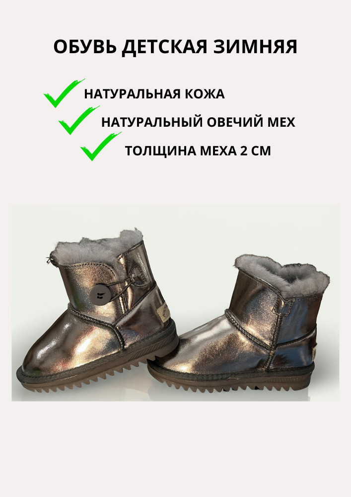 Угги для маленьких девочек просто прелестные, на 23,5 отлично подошёл 25 размер, как и предупреждает продавец в описании товара, надо брать на 1,5-2 размера больше. И по цене очень даже приемлемо, ниже рыночной, учитывая, что натуральные кожа и мех.