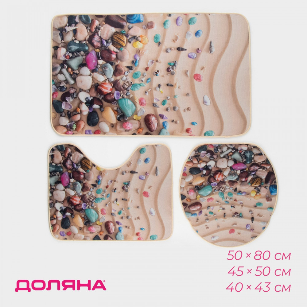 Доляна Набор ковриков для ванной и туалета «Ракушки»