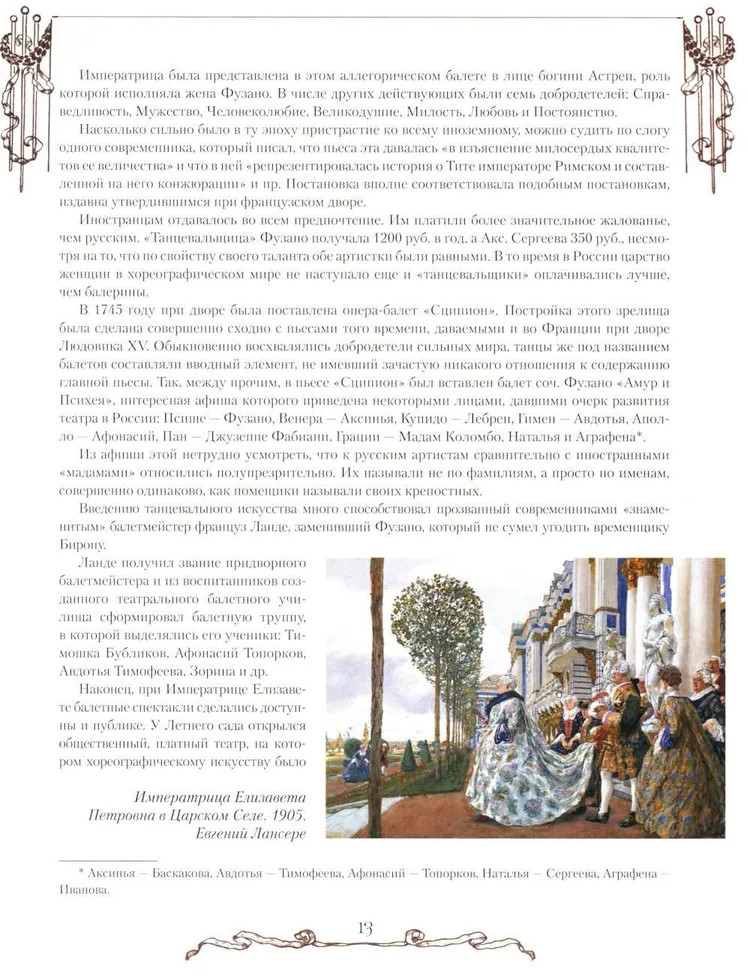 Русский балет. От истоков до триумфаВ данный момент этот товар отсутствует в продаже. Возможно, у нас найдется аналогичный или похожий товар здесь. Серия: Коллекция Книга русского драматурга, историка театра и либреттиста Сергея Худекова (1837–1928) — одно из первых монографических исследований феномена русского балета: от «заморских плясок» времен Ивана Грозного и Бориса Годунова до эпохи Анны Павловой, Вацлава Нижинского, Айседоры Дункан, Михаила Фокина, Тамары Карсавиной... Основой книги стала коллекция самого Худекова, собравшего более 15 тысяч документов и экспонатов об истории театра. «История русского балета» должна была стать частью многотомной «Истории танцев», однако судьба книги была трагична: ее тираж погиб при пожаре в типографии в 1918 году, чудом уцелело всего несколько экземпляров. Работа Сергея Худекова — не только уникальный взгляд очевидца на «золотую эпоху» русского балета, но и панорама всей истории русского балетного искусства — от копирования западных образцов до сознания подлинно национальной школы балетного мастерства, ставшей эталоном для всего мира. Издание богато иллюстрировано редкими гравюрами и фотографиями. |