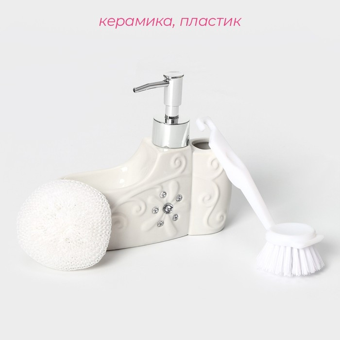 Доляна Дозатор для моющего средства с губкой и щёткой «Блеск»-25% +142