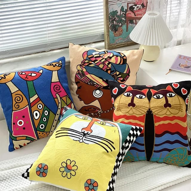 Подушки хорошо подходят для детских комнат, создавая радостную атмосферу, а также могут быть использованы в гостиных для добавления ярких акцентов. Они могут легко сочетаться с другими подушками, пледами и текстилем, создавая гармоничный и уютный декор. Эти подушки станут отличным подарком для детей или любителей кошек, принося радость и уют в их жизнь.