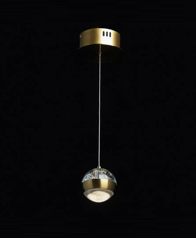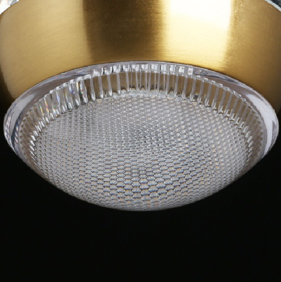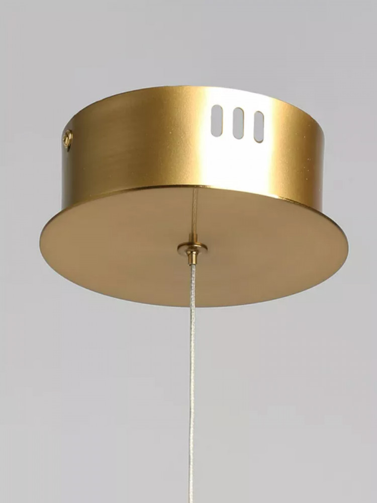 Основание светильника выполнено из комбинации сплавов металлов, что обеспечивает его прочность и долговечность. Потолочная чаша выполнена из металла и окрашена в цвет латунь, что придает ей элегантный вид. Плафон на подвесе в виде троса выполнен из сплава алюминия цвета латунь и обработан по технологии браширования с последующим патинированием, что придает ему уникальный вид. Люстра оснащена двумя светодиодными источниками света типа SMD chip, которые закрыты стеклом и акрилом с фактурой сот. Это обеспечивает равномерное и яркое освещение, а также создает уютную атмосферу в помещении.