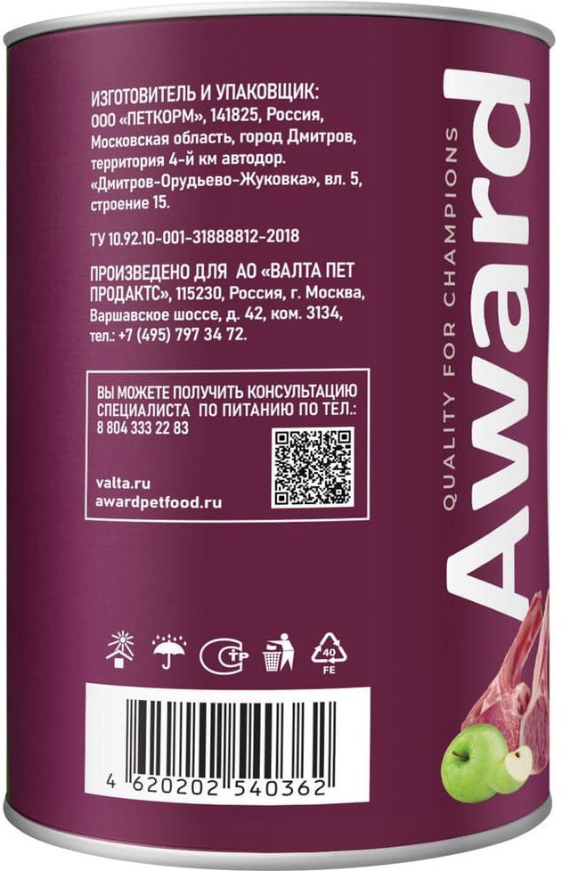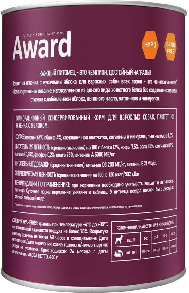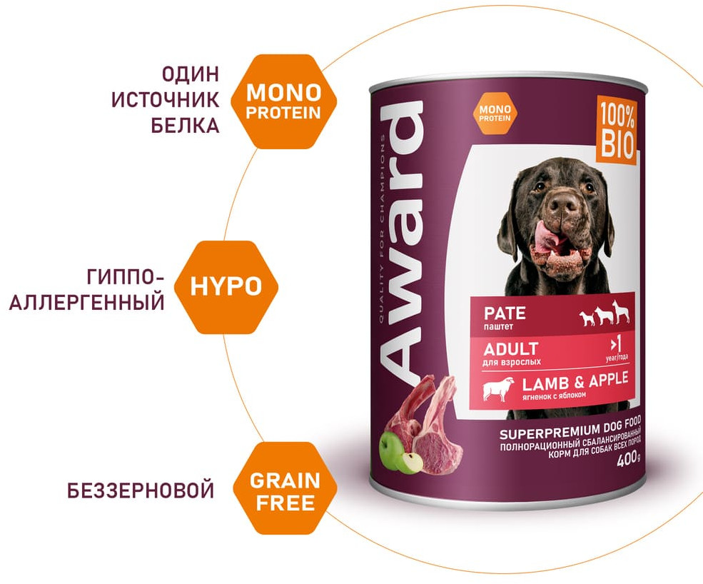 Award Паштет для взрослых собак «Ягненок с яблоком»