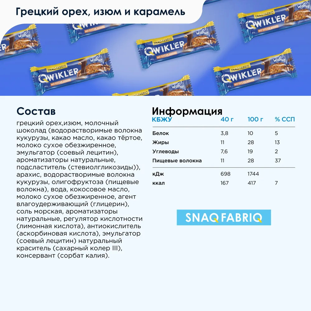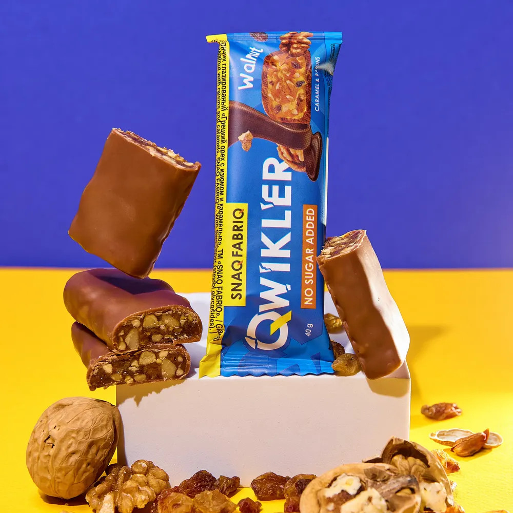 Snaq Fabriq Набор батончиков в шоколаде без сахара «Грецкий орех с изюмом и карамелью»