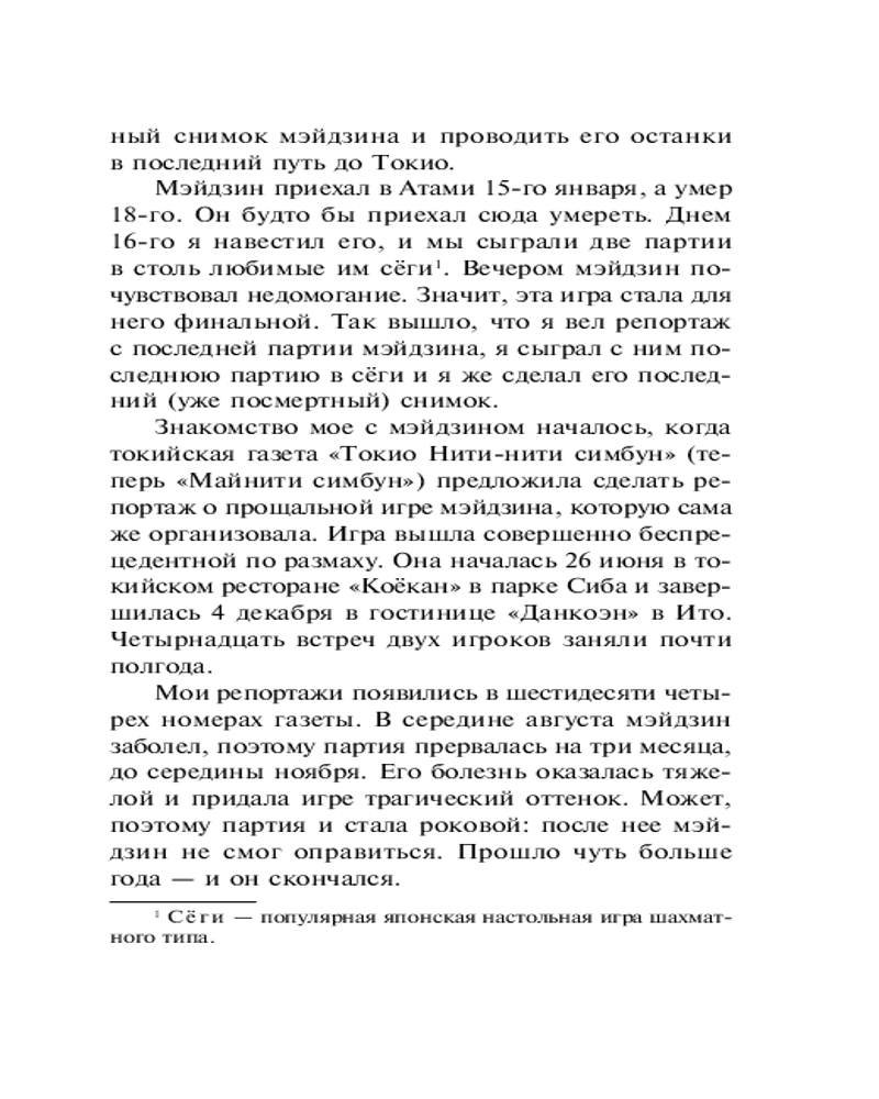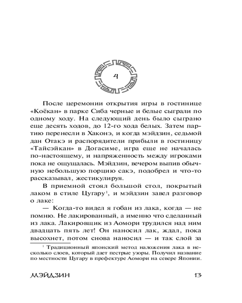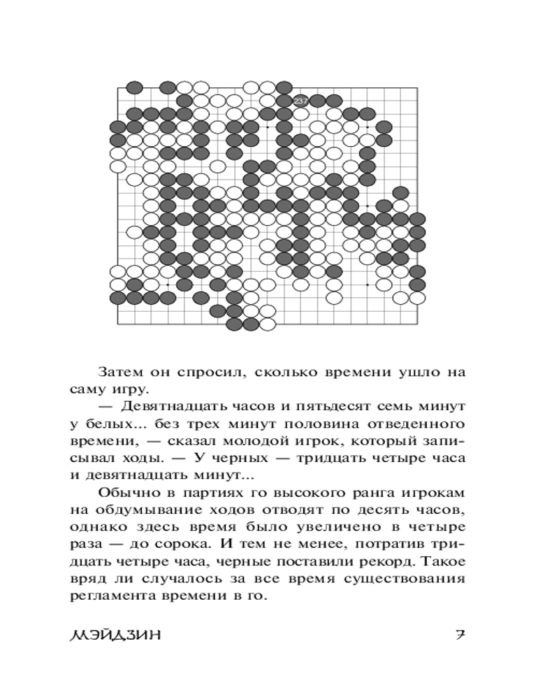 Пришла в отличном состоянии О самой книге - довольно короткая история игры мастеров игры в го двух поколений. С одной стороны человек переживший три поколения с эпохи Мэйдзи, с другой стороны дающий надежды, представитель новой школы игры в го и будущий наследник “Мэйдзина” Очень интересно было узнать о самой игре, о ее тонкостях и отношений к ней игроками, мастерами и гениями этой игры.