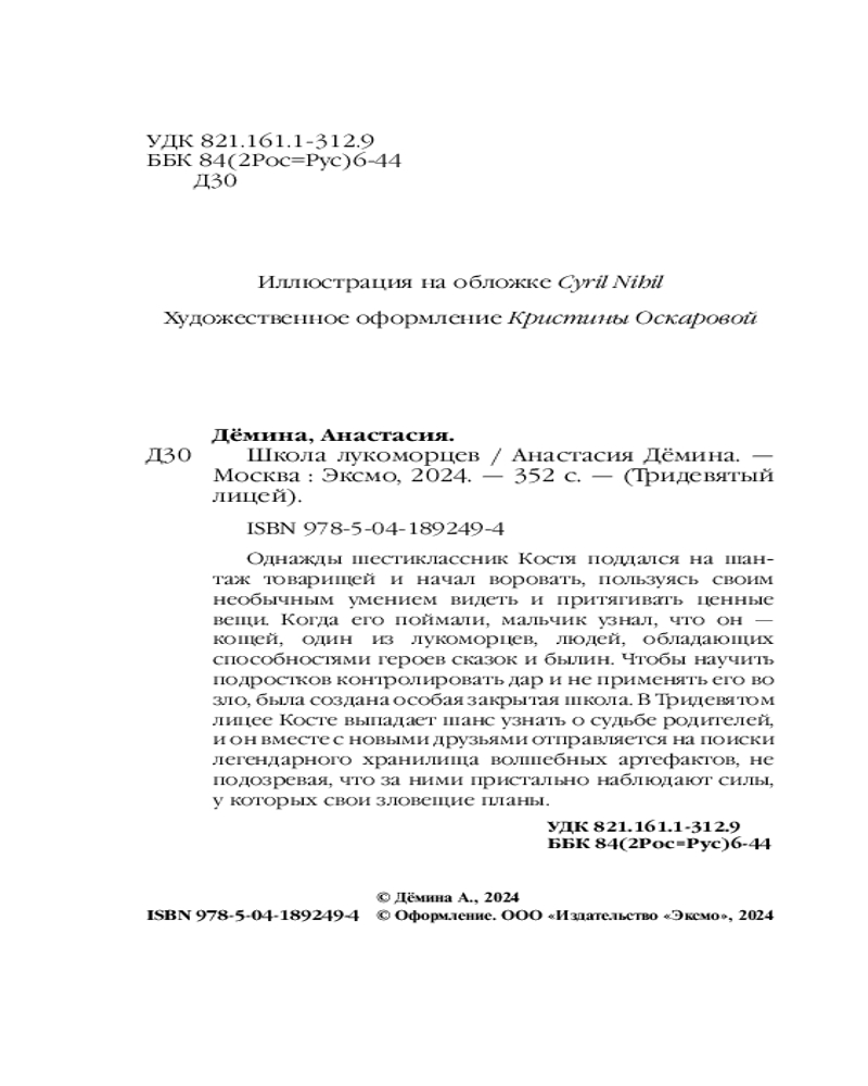 Серия: Тридевятый лицей Первая часть захватывающей и полной магии серии подросткового фэнтези «Тридевятый лицей». Необычная история для всех, кто любит волшебные школы и русские сказки! Представьте, что люди со способностями героев сказок и былин живут среди нас!