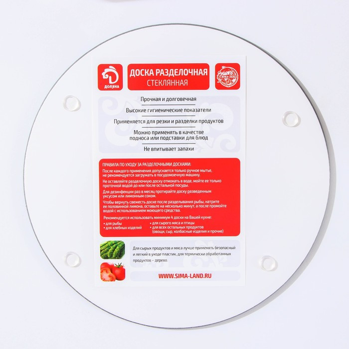 Стеклянная разделочная доска — это практичный аксессуар для нарезки продуктов, стильное украшение кухни и эффектная подставка для блюд. Стеклянная поверхность нейтрально относится к посторонним ароматам. Она не впитывает запахи и не поглощает влагу. Уход за изделием прост — достаточно промыть его под теплой водой и насухо вытереть салфеткой.