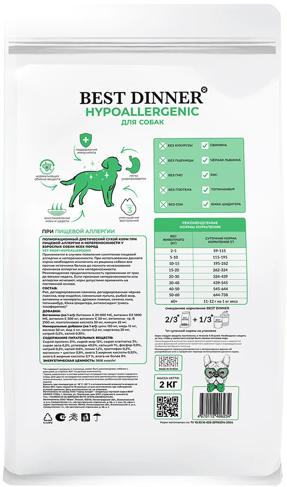 Best Dinner Корм сухой диетический при пищевой аллергии и непереносимости у взрослых собак