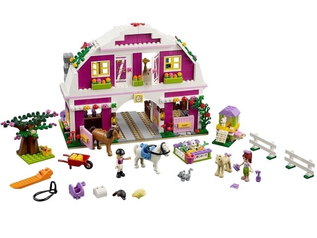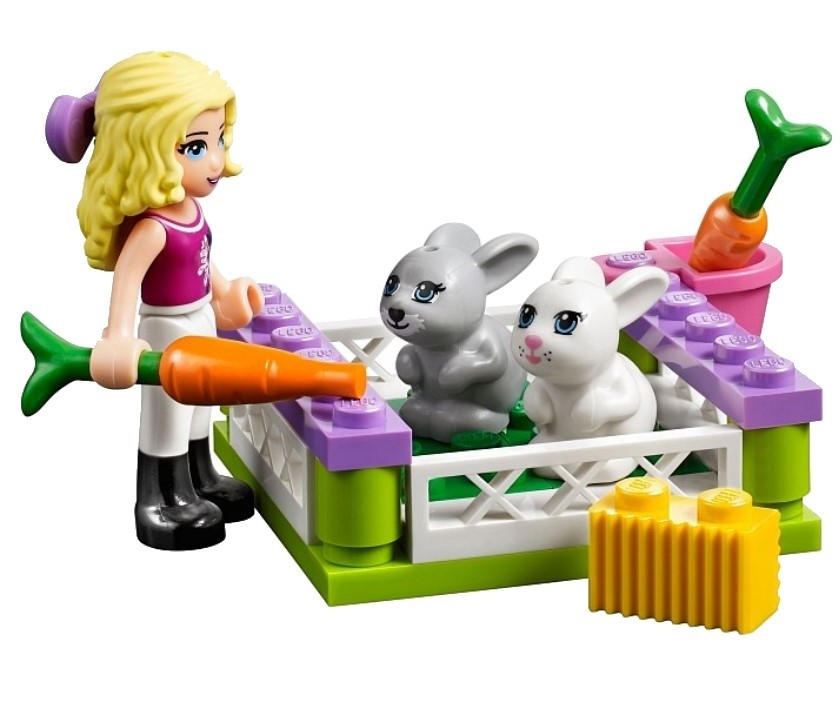 LEGO (ЛЕГО) Ранчо «Саншайн»В данный момент этот товар отсутствует в продаже. Возможно, у нас найдется аналогичный или похожий товар здесь. Серия: LEGO Friends Двухэтажное здание ранчо выполнено из ярко-розовых деталей и имеет форму арки. На первом этаже симметрично располагаются две конюшни, предназначенные для белой и коричневой лошадки, а также маленького жеребёнка. Внутри есть прозрачное окно, стойло, кормушка и уголок для хранения седла и аксессуаров. С передней стороны видны подвесные фонари и открывающиеся розовые дверцы с табличками. На них написаны клички лошадей. Вокруг всего дома высажены цветы. Между конюшнями оборудован главный въезд на территорию ранчо. Перед домом выстроен загон для кроликов и курятник. Верхний этаж дома разделён на две комнаты. Обе они имеют окна с распашными ставнями и частично приподнимающуюся крышу. В первой комнате организована гостиная с обеденным столом, белым шкафчиком и камином. Во второй поставлено большое фиолетовой кресло с торшером и кухонный уголок с посудой. |