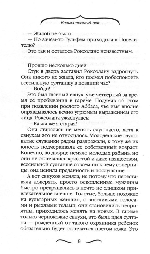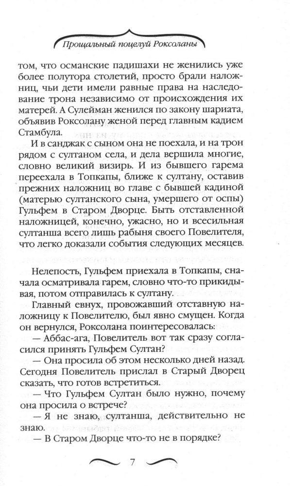 Прощальный поцелуй Роксоланы. «Не надо рая!»В данный момент этот товар отсутствует в продаже. Возможно, у нас найдется аналогичный или похожий товар здесь. Серия: Великолепный век «Но если в раю тебя не будет — не надо рая!» — написал султан Сулейман Великолепный после успения своей любимой жены Роксоланы, с которой был счастлив в браке более 30 лет, которую обожал до ее последнего вздоха и оплакивал до конца своих дней. Как ей удалось превратить всю их долгую совместную жизнь в сплошной «медовый месяц» и оставаться Хюррем (Смеющейся) даже перед лицом смерти? Что она завещала мужу, подарив ему прощальный поцелуй и засыпая навеки в его объятиях? За кого молилась в свой последний час? И зачем султан тайно вызывал к Роксолане православного священника?.. Этот роман — не об утратах и разлуке, а о вечной любви, над которой не властно беспощадное время. Читая этот бестселлер, не стесняйтесь слез. Эта книга завершает на светлой ноте |