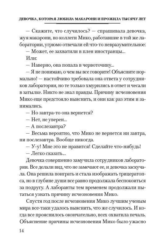Девочка, которая любила макарони и прожила тысячу летВ данный момент этот товар отсутствует в продаже. Возможно, у нас найдется аналогичный или похожий товар здесь. Перед вами руководство, что делать, если ты — обычная девочка с нездоровой страстью к пирожным, но тебе непременно нужно прожить тысячу лет. Шутка. На самом деле вы держите в руках целый сборник полных любви и волшебства историй — местами забавных, местами грустных. Кроме девочки, которая очень любила макарони, тут есть девочка, которая умела говорить с бетоном, странный инопланетянин Парапоропурун, Цикадая, которая явилась из Королевства Цикад, — и это еще не все удивительные персонажи, с которыми вы встретитесь в этой книге... |