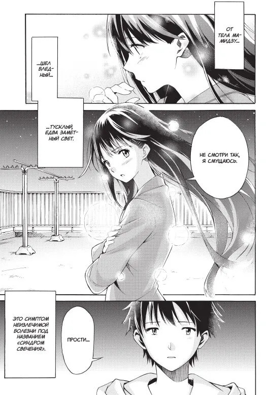 Ты сияешь лунной ночью. Том 1В данный момент этот товар отсутствует в продаже. Возможно, у нас найдется аналогичный или похожий товар здесь. Серия: Ты сияешь лунной ночью Манга-версия трогательного романа-бестселлера! Старшекласснику Такуе, который винит себя в смерти сестры, поручают навестить одноклассницу Мамидзу Ватарасэ. Под светом луны тело девушки источает слабое сияние: это симптом неизлечимой болезни под названием «синдром свечения». Мамидзу знает, что жить ей осталось недолго, и рассказывает Такуе о своем списке желаний, которые она хотела бы осуществить перед смертью... |
